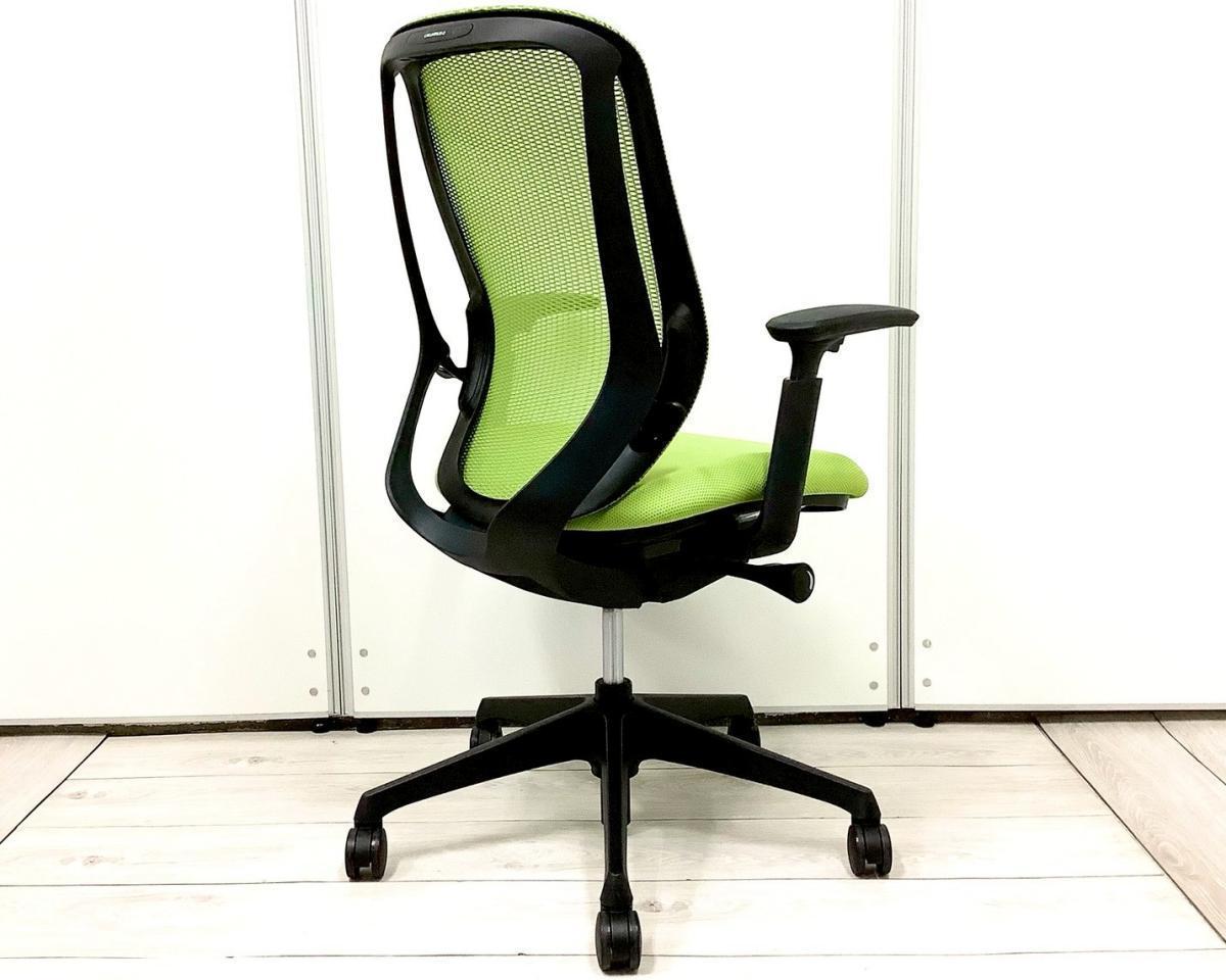 【2脚限定】【関西倉庫在庫品】【前傾チルト機能付き】【オカムラ製品で最も人気を集める高機能メッシュチェア!】■オカムラ(okamura)製 シルフィ(Sylphy)チェア 肘付き ハイバック 背面メッシュ ■可動肘 ■ライムグリーン×ブラックシェル【状態良好品!】