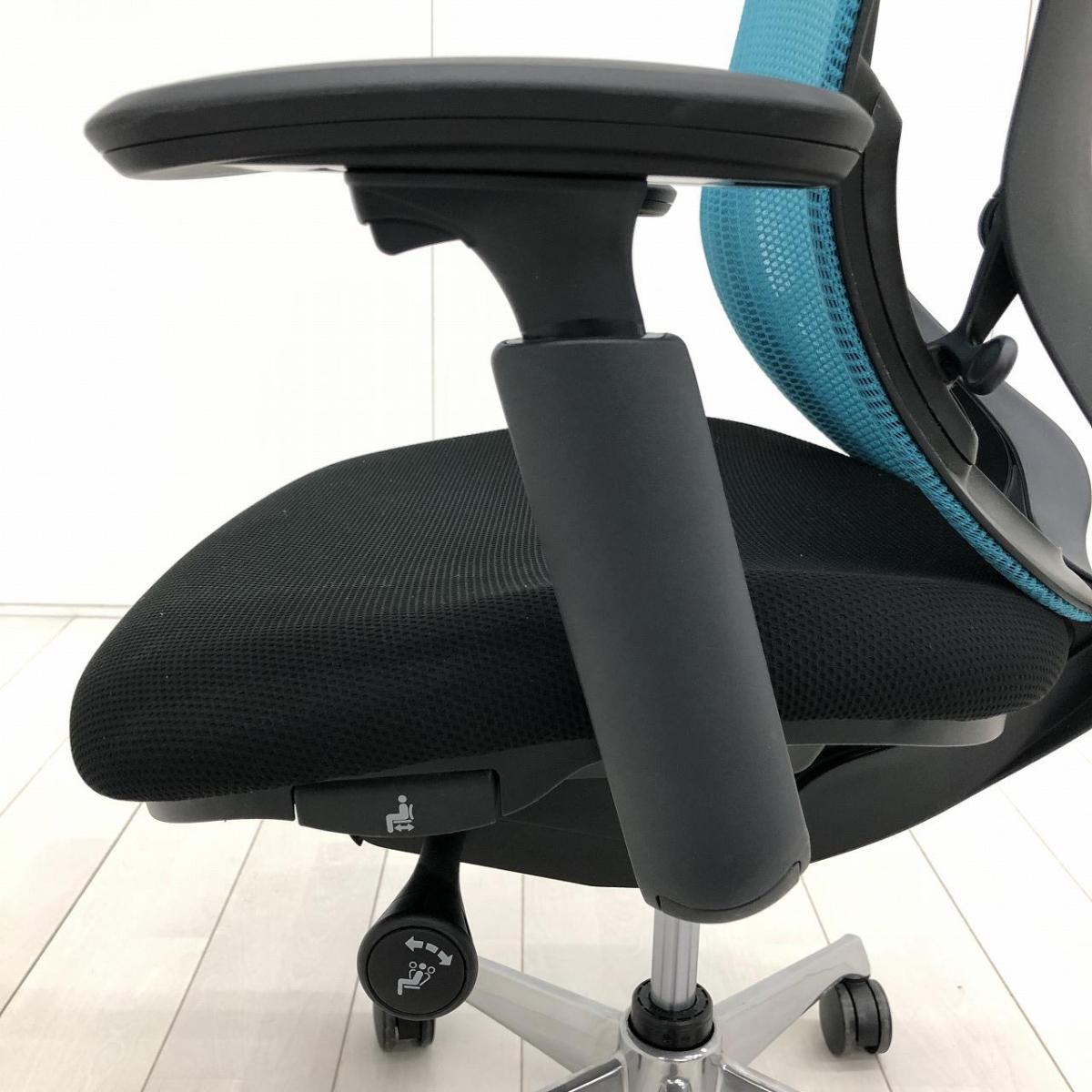 【2脚限定】【三次元曲面が身体にフィット!前傾チルト機能付き大人気メッシュチェア!】■オカムラ(okamura)製 シルフィーチェア(Sylphy) 肘付きハイバック ■背面メッシュ ■可動肘 ■ブルーグリーン×ホワイトシェル