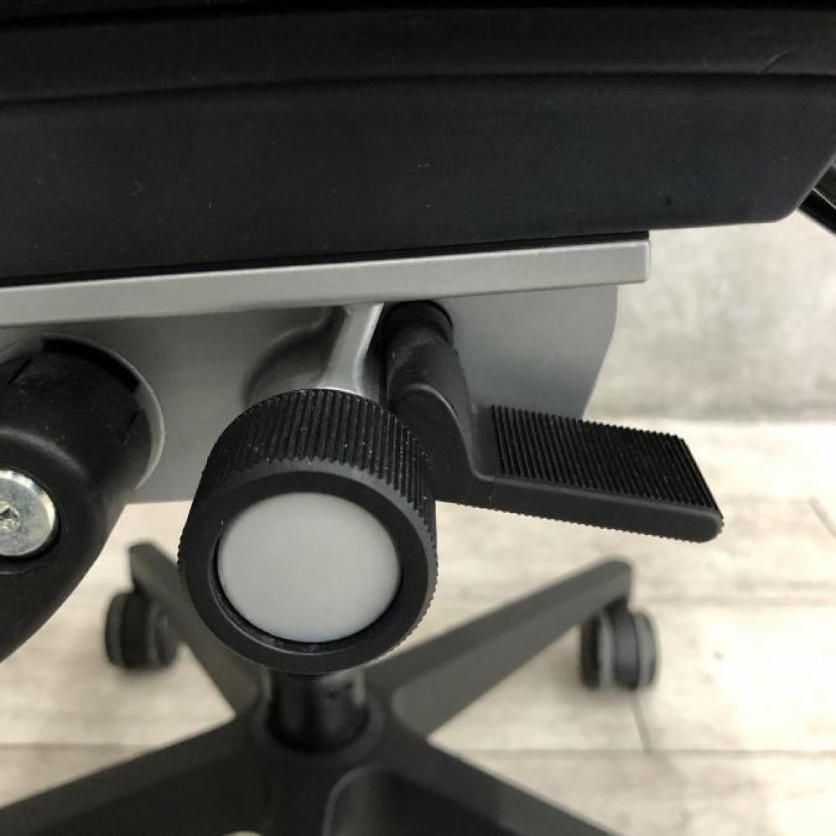 快適な座り心地に不可欠な調節機能である、上下昇降、座面の奥行き調整、リクライニングなどを備えており、操作もわかりやすく好評です。 特に、座面の奥行きは、座面下の左右に通った細いバーで調整でき、座ったままで軽やかに滑るように調整が可能です。 価格面では、新品では高めですが、中古は流通も多く、定価の3割前後の価格で高級チェアの座り心地を手に入れることができます!