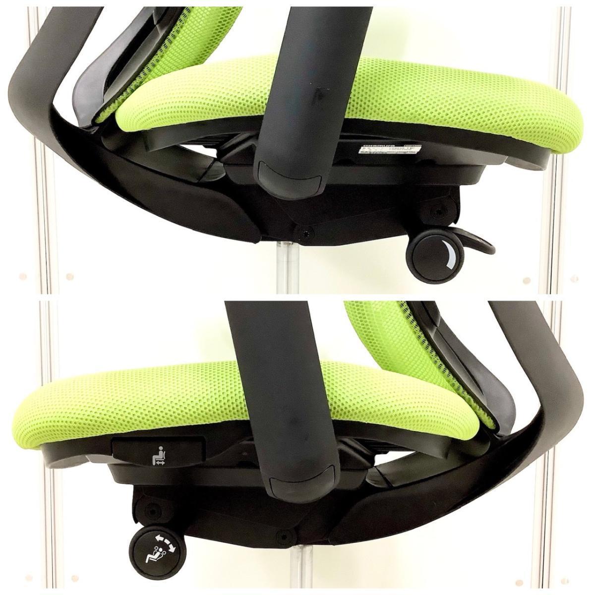 - 座面右下のダイヤル操作で、リクライニングの強弱調整が行えます。これまでのダイヤル式よりも、少ない回転数で、最弱?最強の調整が可能です。