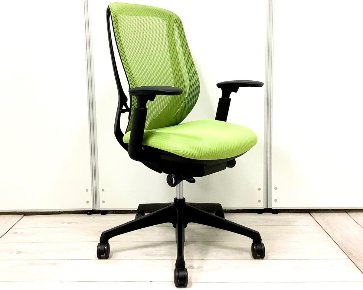 【三次元曲面で快適フィット!新感覚のシーティング!】■オカムラ シルフィーチェア 肘付 ライムグリーン ポリッシュ脚 ■背もたれのカーブを2段階調整できる!【Okamrua Sylphy】★【在庫入替セール品!】