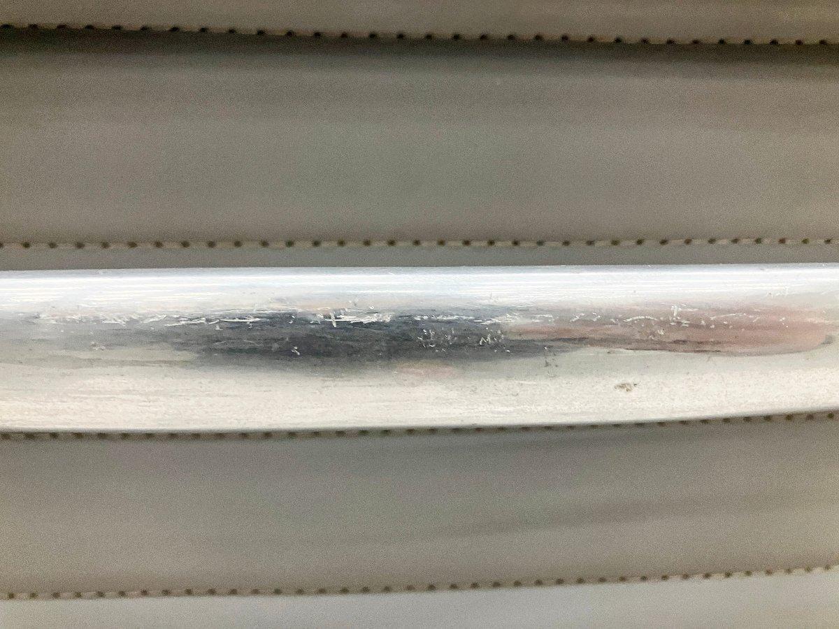 - かなり強い濃い黄ばみ・変色が商品全体にある。(例、座面・背もたれ、脚部等にある。)