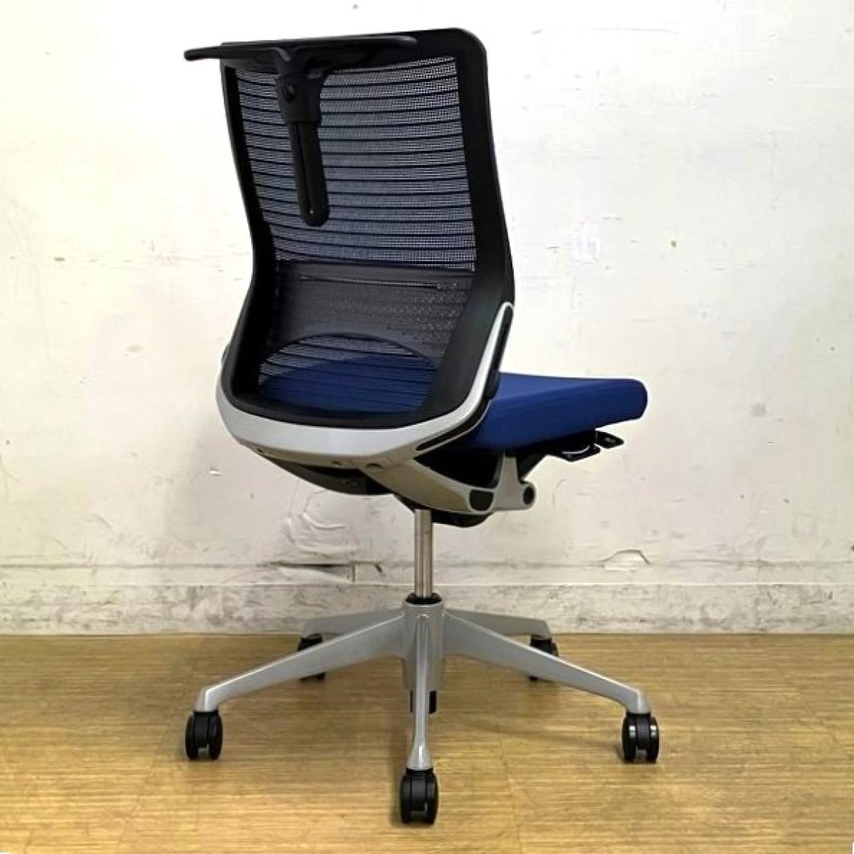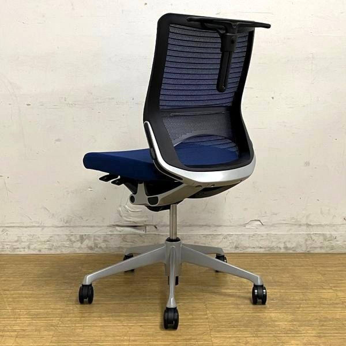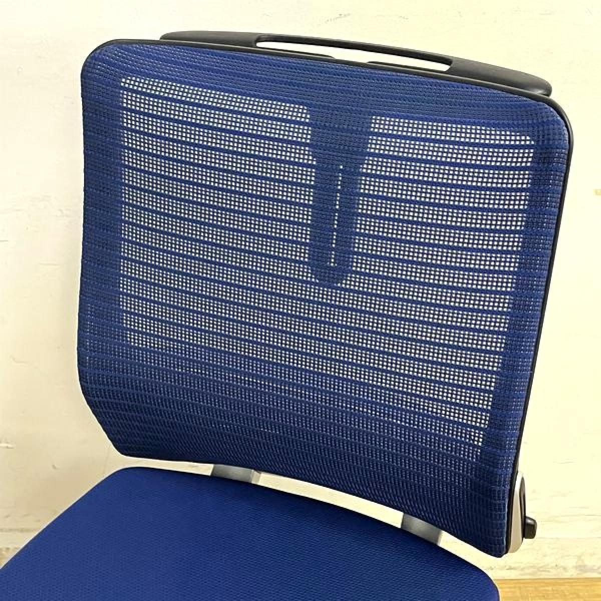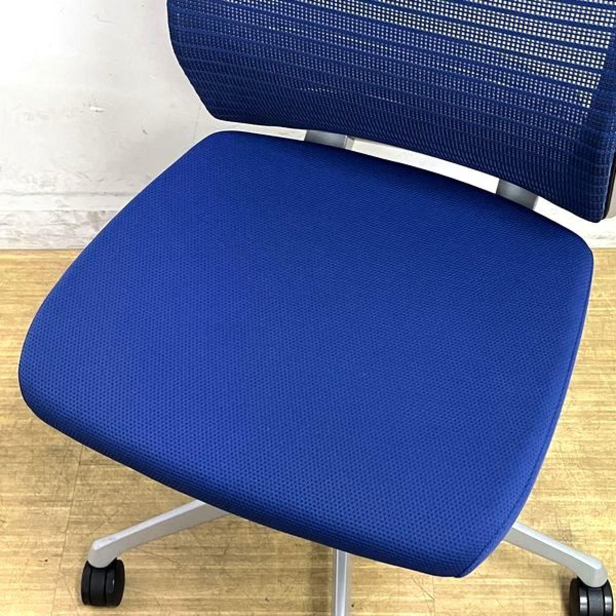 【定価約18万円】【満足度の高い座り心地!上質なクッション!機能性も充実!】■オカムラ/コーラル ■肘無ミドルバックチェア ■ブルーカラー ■背メッシュ 会議室にも執務室にも合います!