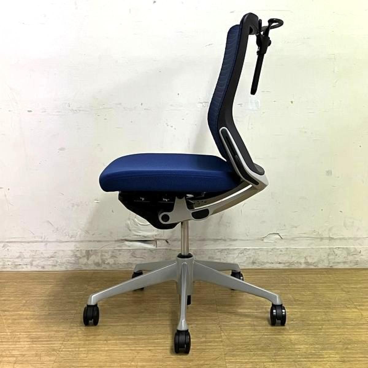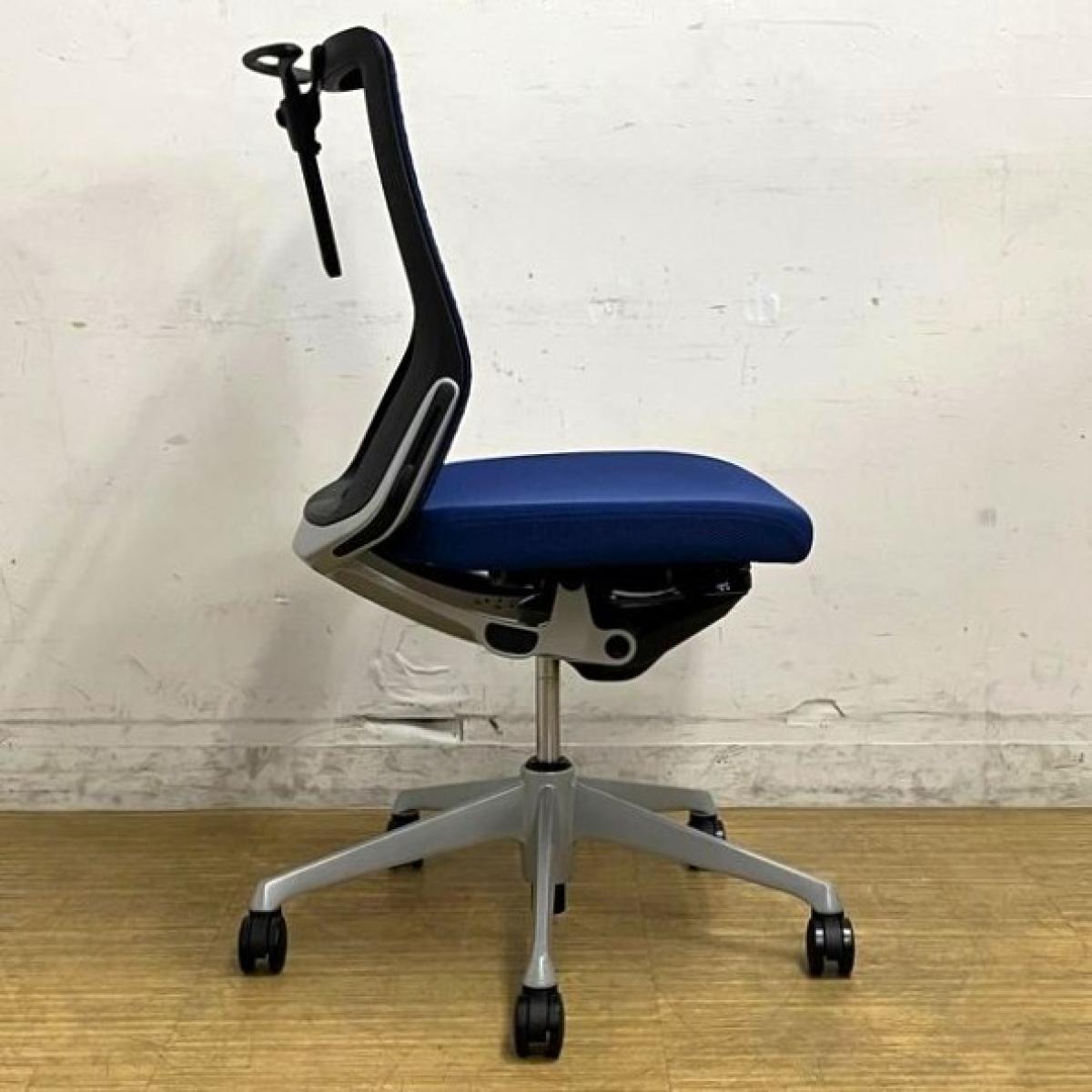 【定価約18万円】【満足度の高い座り心地!上質なクッション!機能性も充実!】■オカムラ/コーラル ■肘無ミドルバックチェア ■ブルーカラー ■背メッシュ ■ヘッドレスト付き