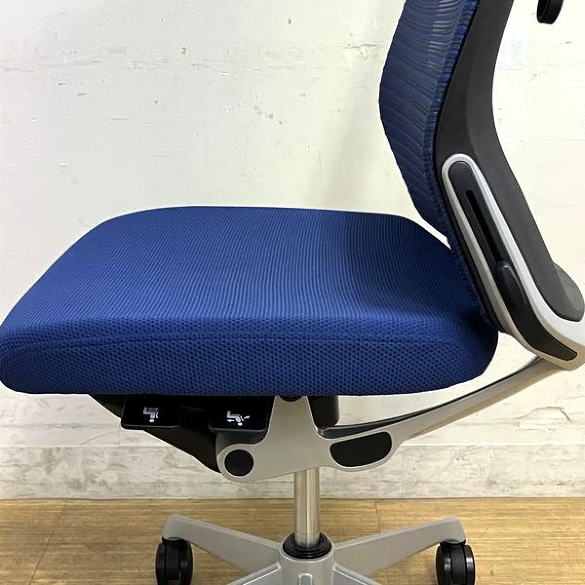 【関西倉庫在庫】■オカムラ コーラルチェア ブルー ハンガー付 ■上質で快適な座り心地のハイスペックチェア!【弊社使用欄:A01052260】