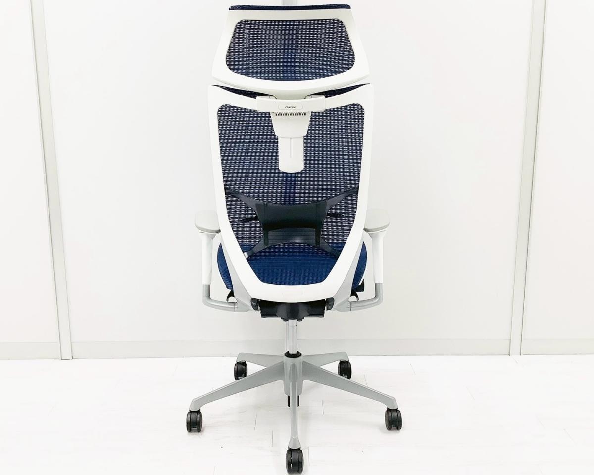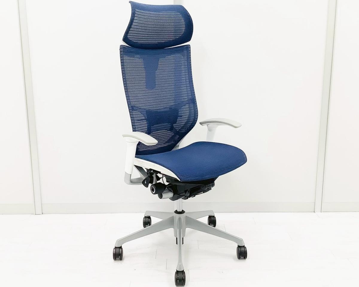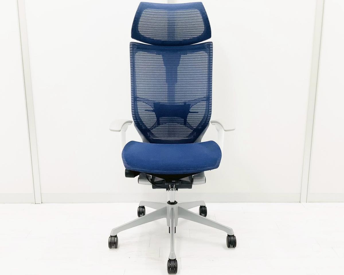 【2024年製!】【限定2脚】人気のヘッドレスト付!数量限定入荷!【良い椅子は腰を守る投資です!】■オカムラ バロンチェア 可動肘付 ブルー ヘッドレスト付 座面メッシュ シルバーフレーム ■上質な座り心地を体感できます!- 日本橋店
