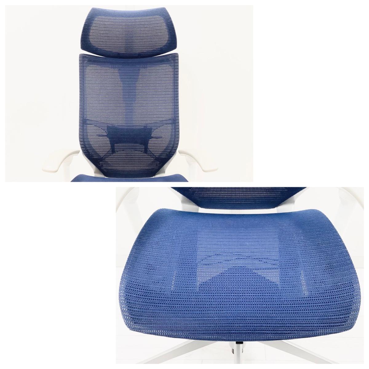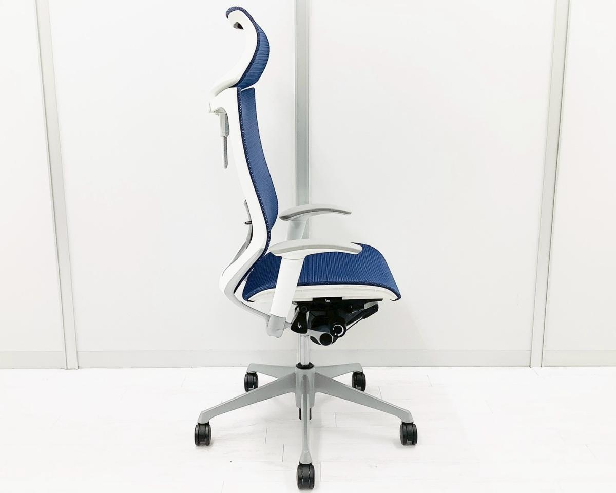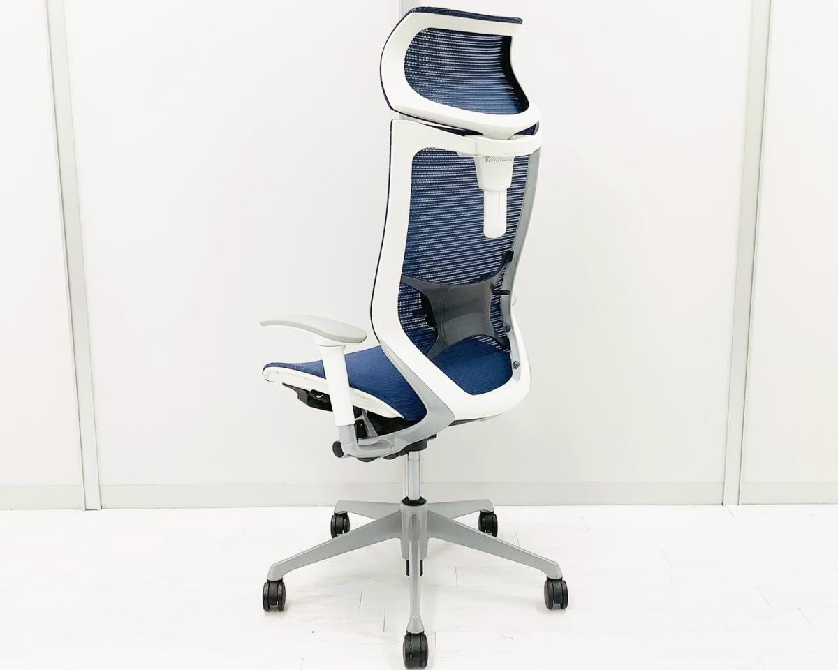 【2024年製!】【限定2脚】人気のヘッドレスト付!数量限定入荷!【良い椅子は腰を守る投資です!】■オカムラ バロンチェア 可動肘付 ブルー ヘッドレスト付 座面メッシュ シルバーフレーム ■上質な座り心地を体感できます!- 日本橋店