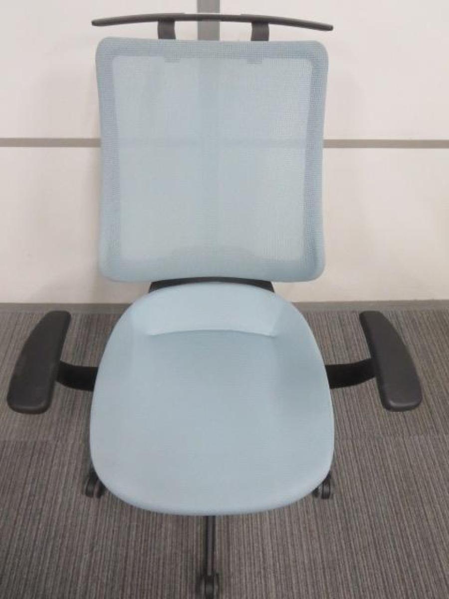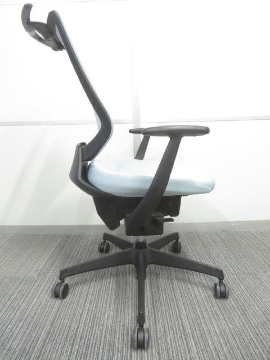 【イスとひとつになれる新感覚! 360°揺れて体を自由に動かせる「グライディング・メカ」搭載!】■コクヨ(KOKUYO)製 イングチェア (ing) 肘付ハイバック ■ライトブルー ■背面メッシュタイプ ■固定肘 ■コートハンガー付き