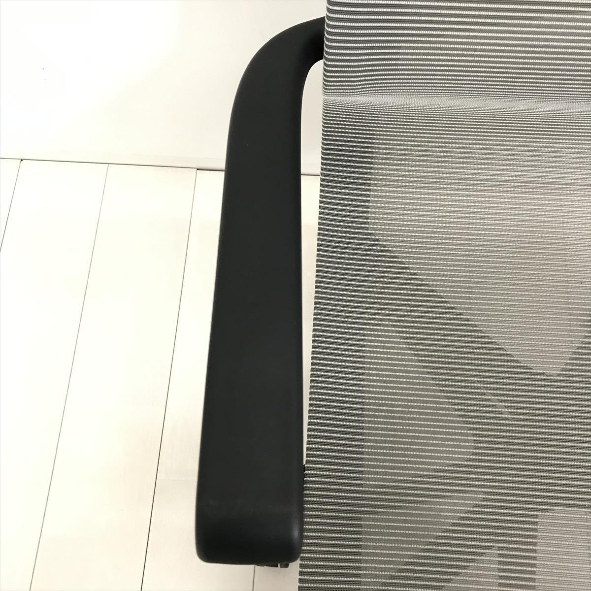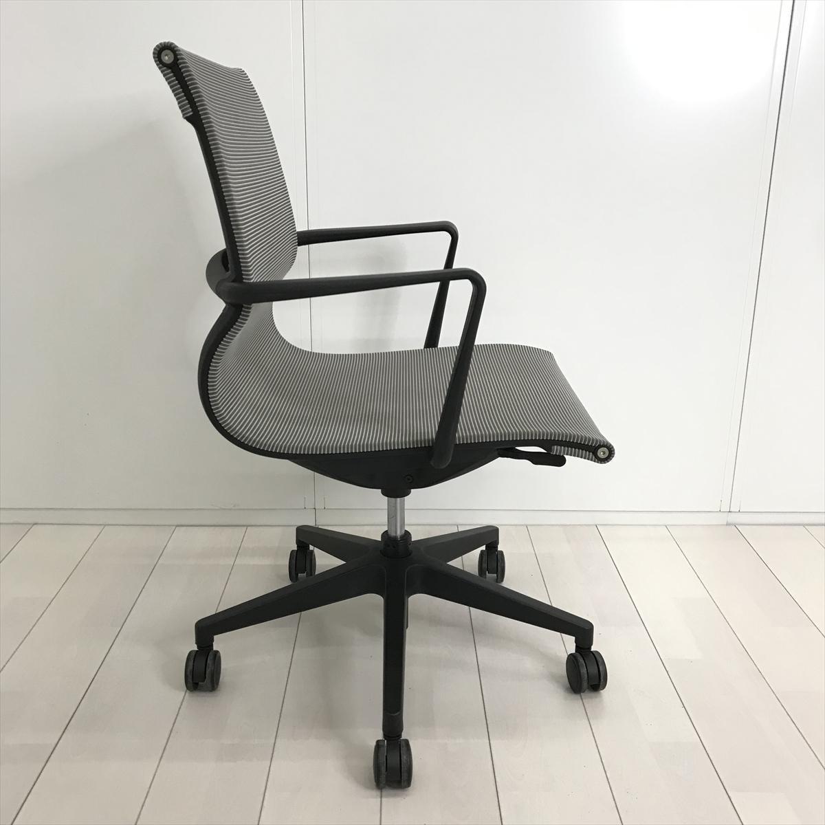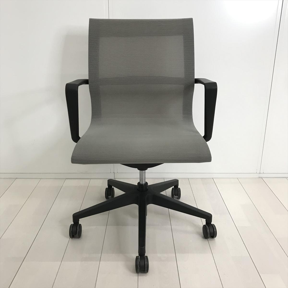 【開放的な空間を演出するスタイリッシュなデザイン!】■アイコ(AICO)製 M-1055シリーズ 肘付 ローバック ミーティングチェア 多目的チェア ■背・座面メッシュ ■固定肘 ■グレー- 茨城南店