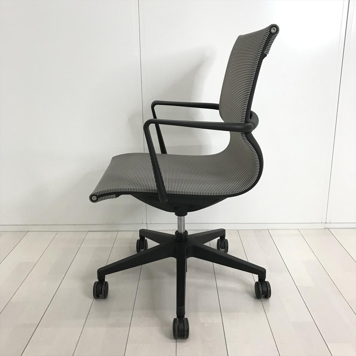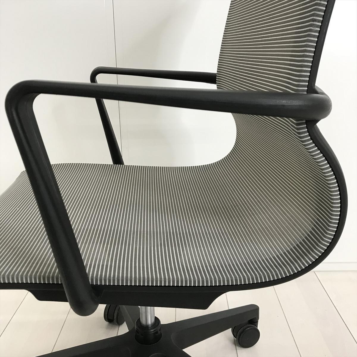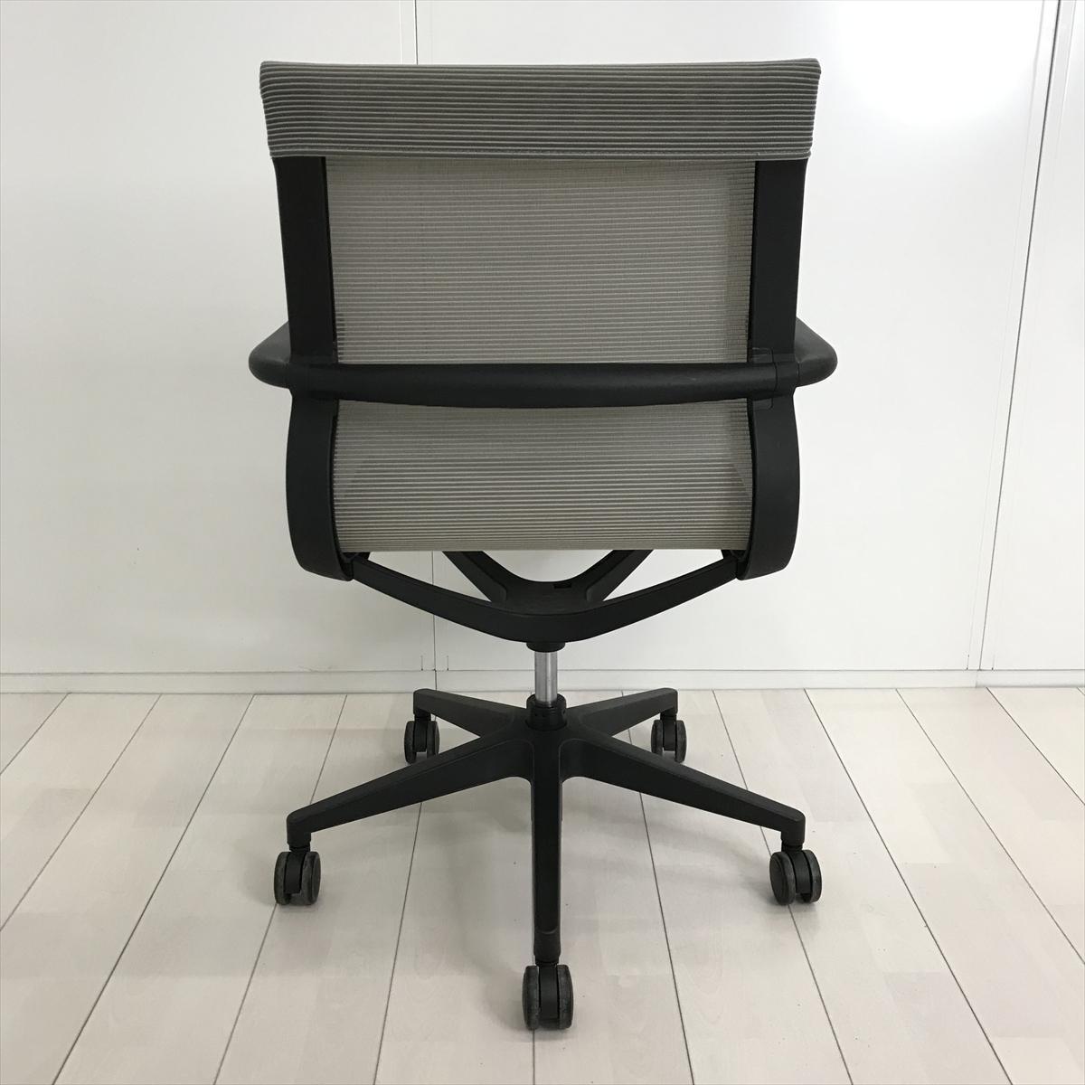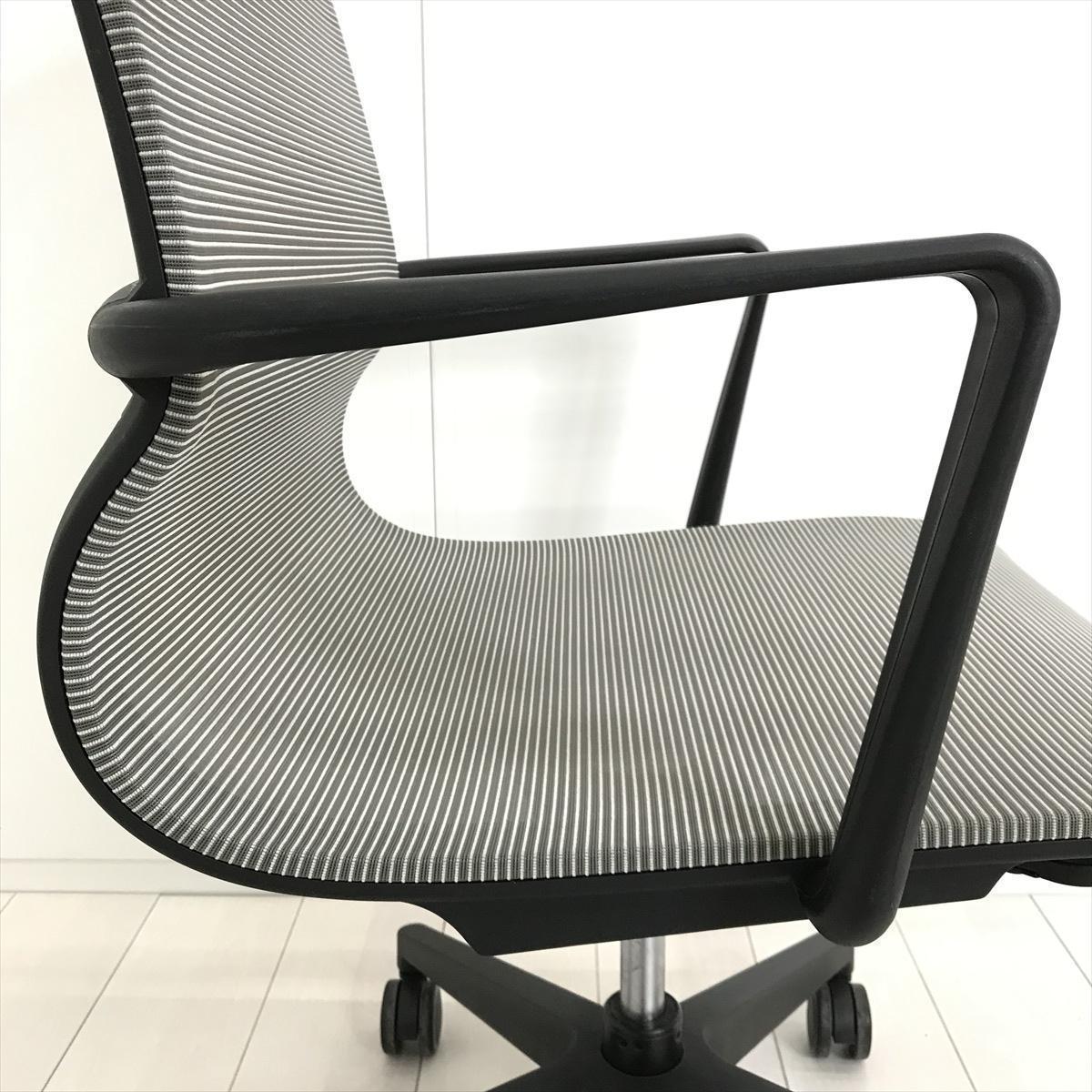 【開放的な空間を演出するスタイリッシュなデザイン!】■アイコ(AICO)製 M-1055シリーズ 肘付 ローバック ミーティングチェア 多目的チェア ■背・座面メッシュ ■固定肘 ■グレー- 茨城南店