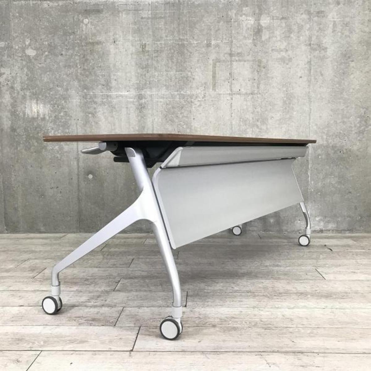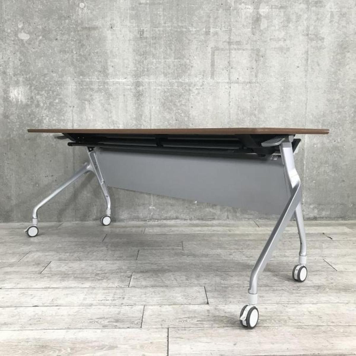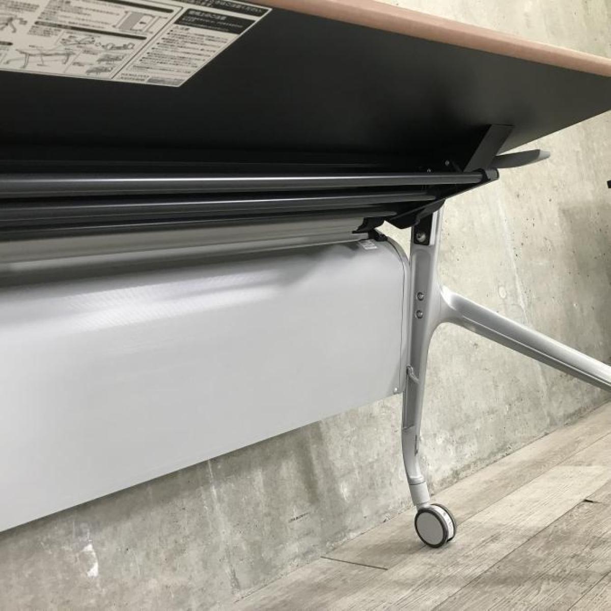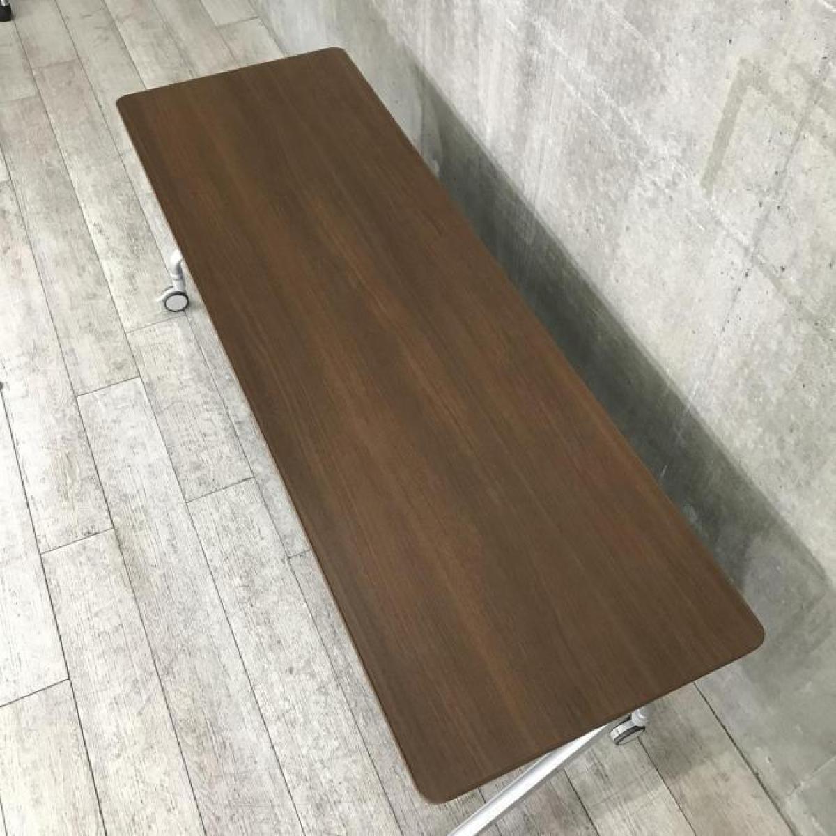 【希少な暗い木目調天板!使わないときは賢く収納!使うときはしっかり機能!】■コクヨ(KOKUYO)製 エピファイ(EPIPHY)シリーズ サイドスタックテーブル 会議用 W1800×D600×H720mm ■キャスター付き ■ブラウン- 名古屋本店