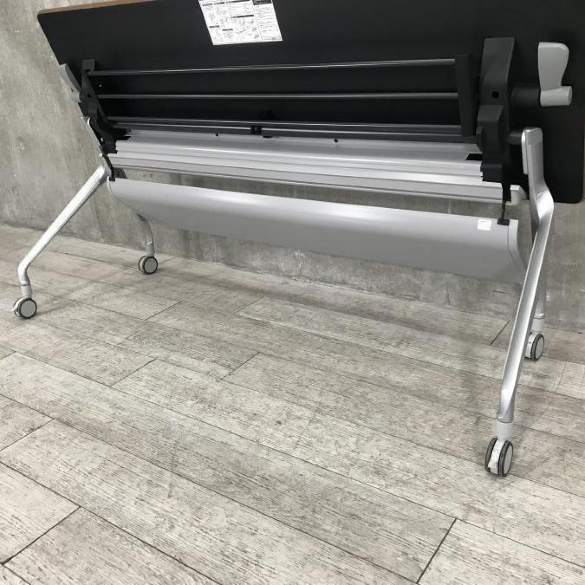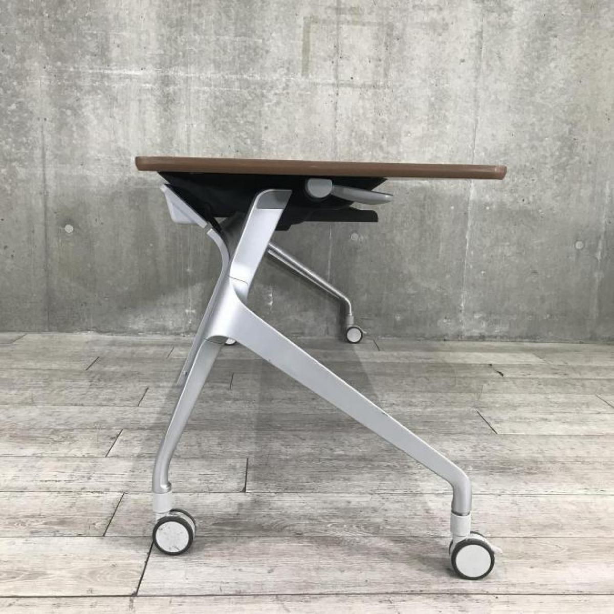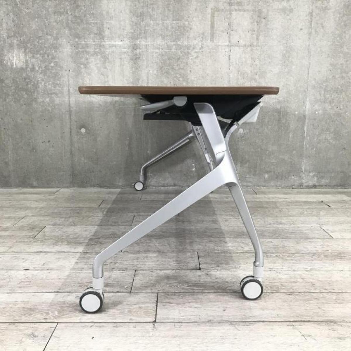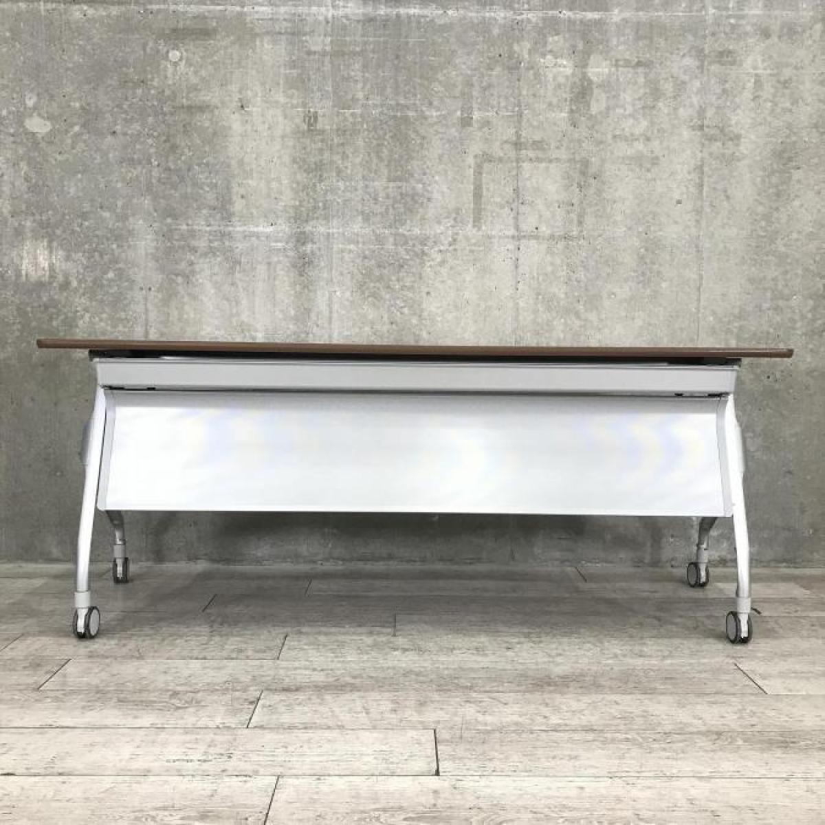 【希少な暗い木目調天板!使わないときは賢く収納!使うときはしっかり機能!】■コクヨ(KOKUYO)製 エピファイ(EPIPHY)シリーズ サイドスタックテーブル 会議用 W1800×D600×H720mm ■キャスター付き ■ブラウン- 名古屋本店