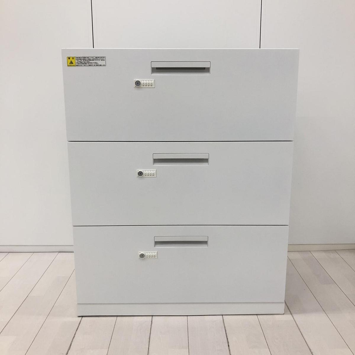 内田洋行 HSシリーズ 3段ラテラル書庫 ホワイト 鍵付き シリンダー錠 ※写真は天板付きですが、実際は天板無しとなります