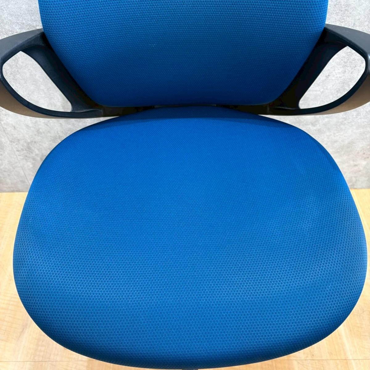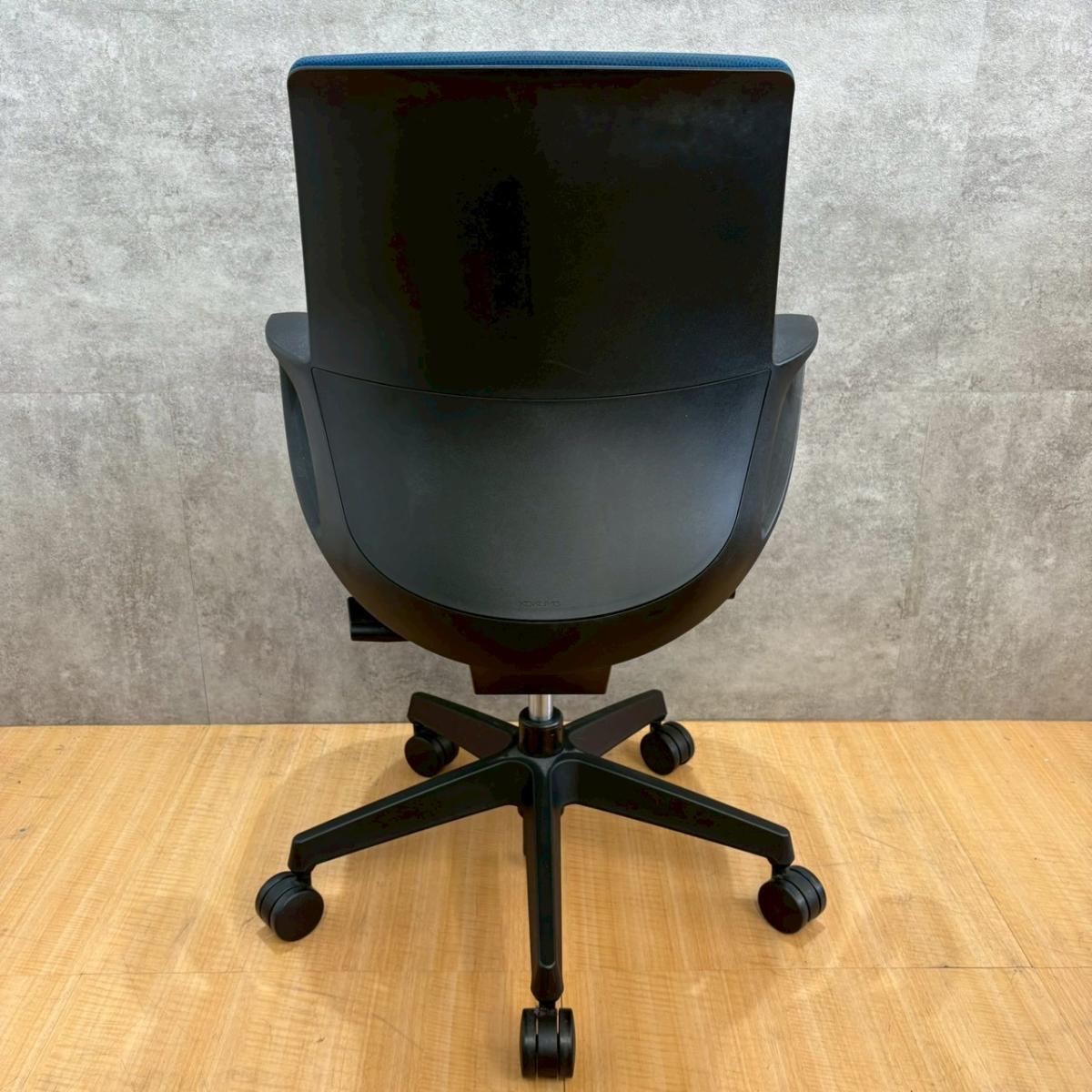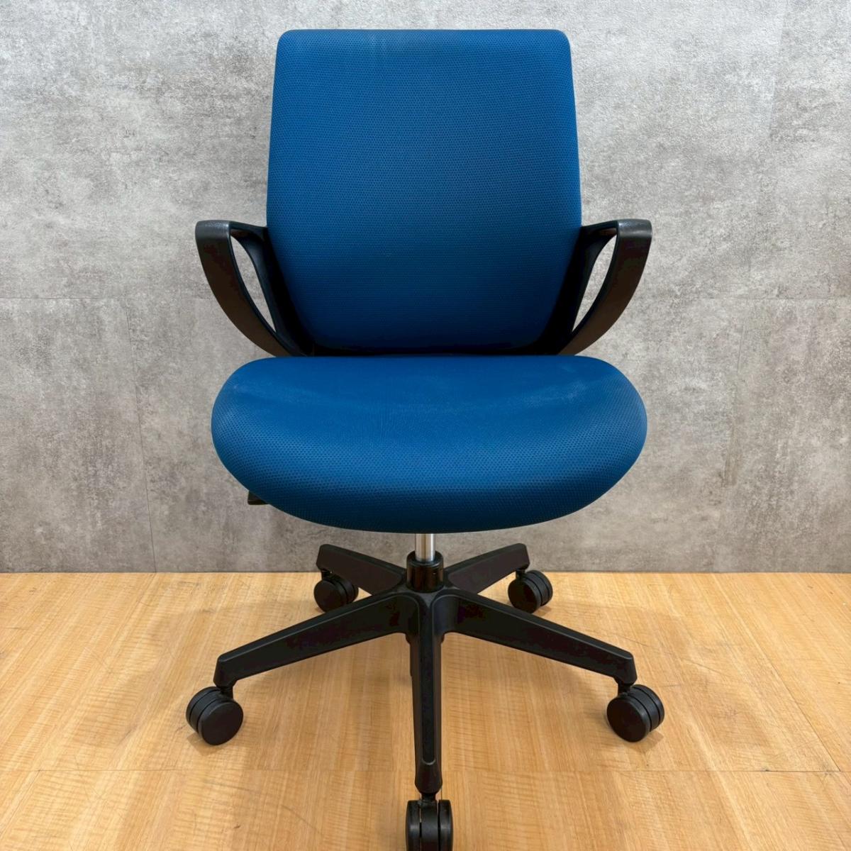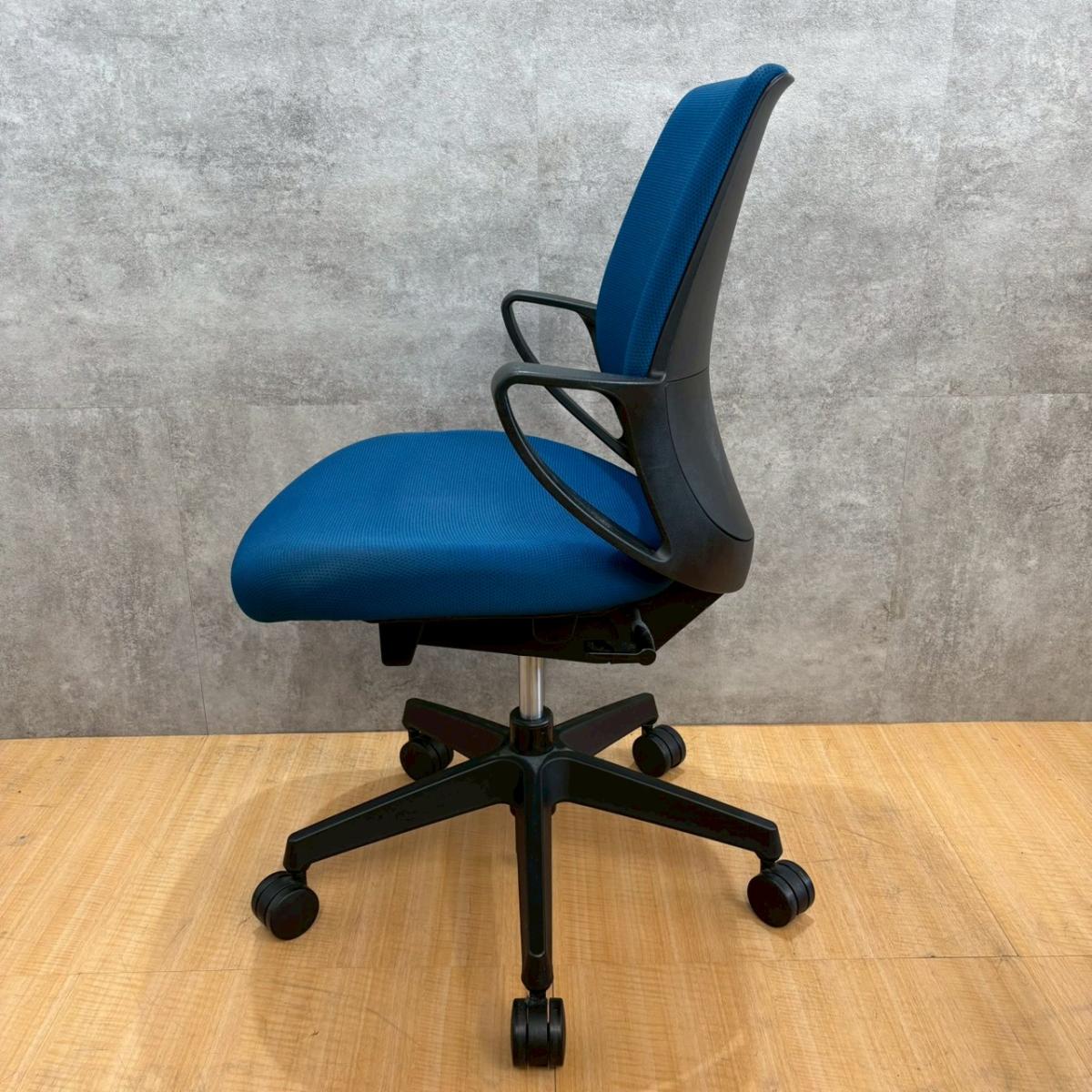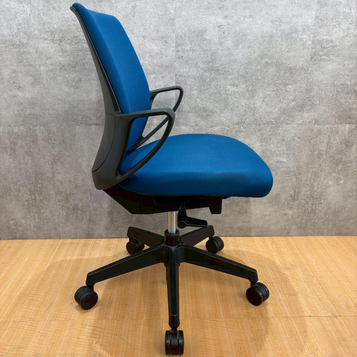 【デスクにスッキリ収納できるコンパクト設計!スマートなデザインで使い勝手が良し!】■コクヨ(KOKUYO)製 ピコラチェア(picora) 肘付き ローバック ■プルシアンブルー × ホワイトシェル 脚ブラック