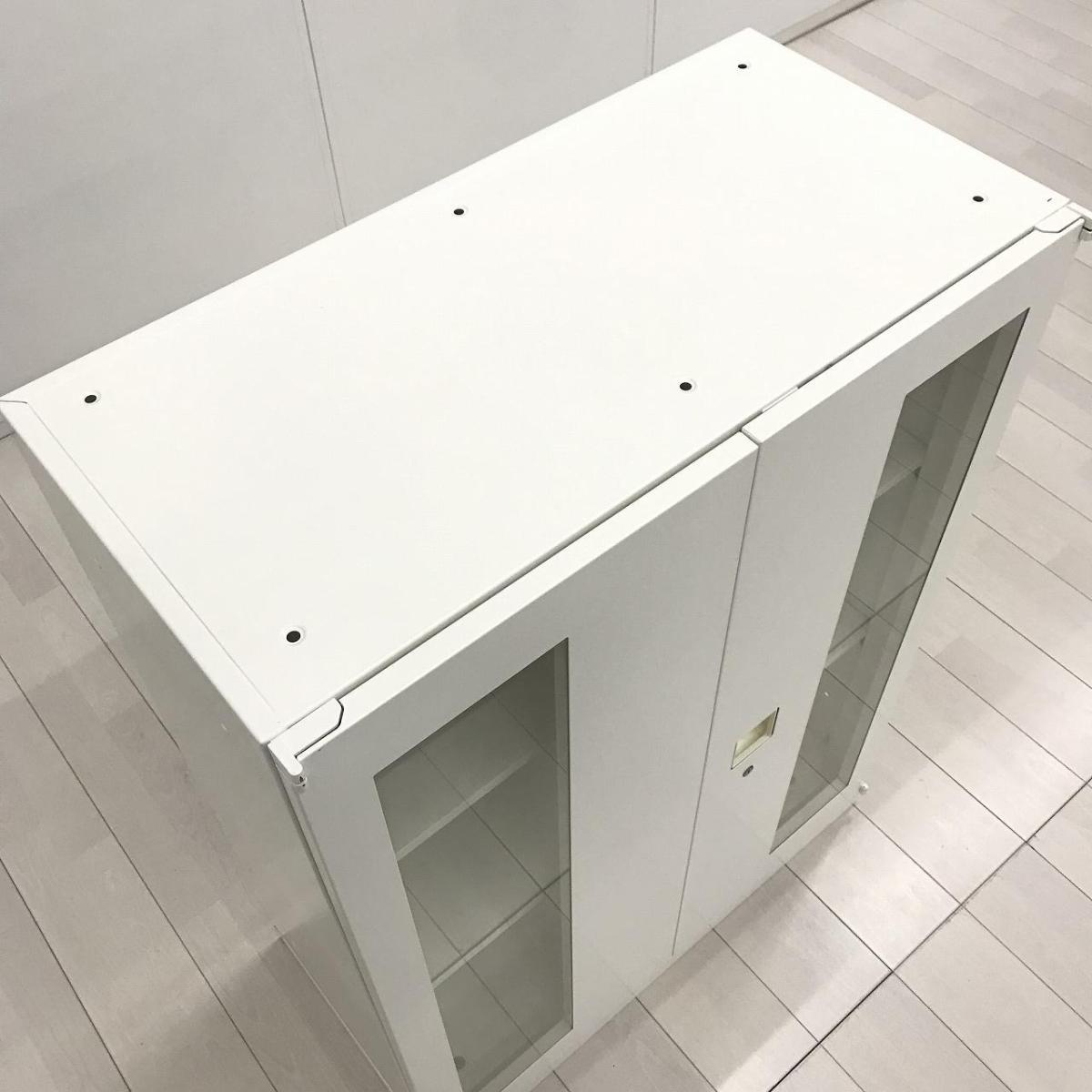 【4/7(火)入荷予定の商品となります!】【カギ作成可能!】【希少なガラス扉タイプの両開きキャビネット!扉をあけずに収納品を確認!】■オカムラ(okamura)製 レクトラインシリーズ ガラス戸両開き書庫 ローキャビネット ■ホワイト ■シリンダー錠サーキュラーバリューCO2削減量の算出について