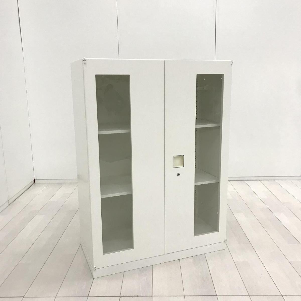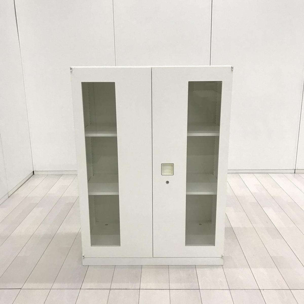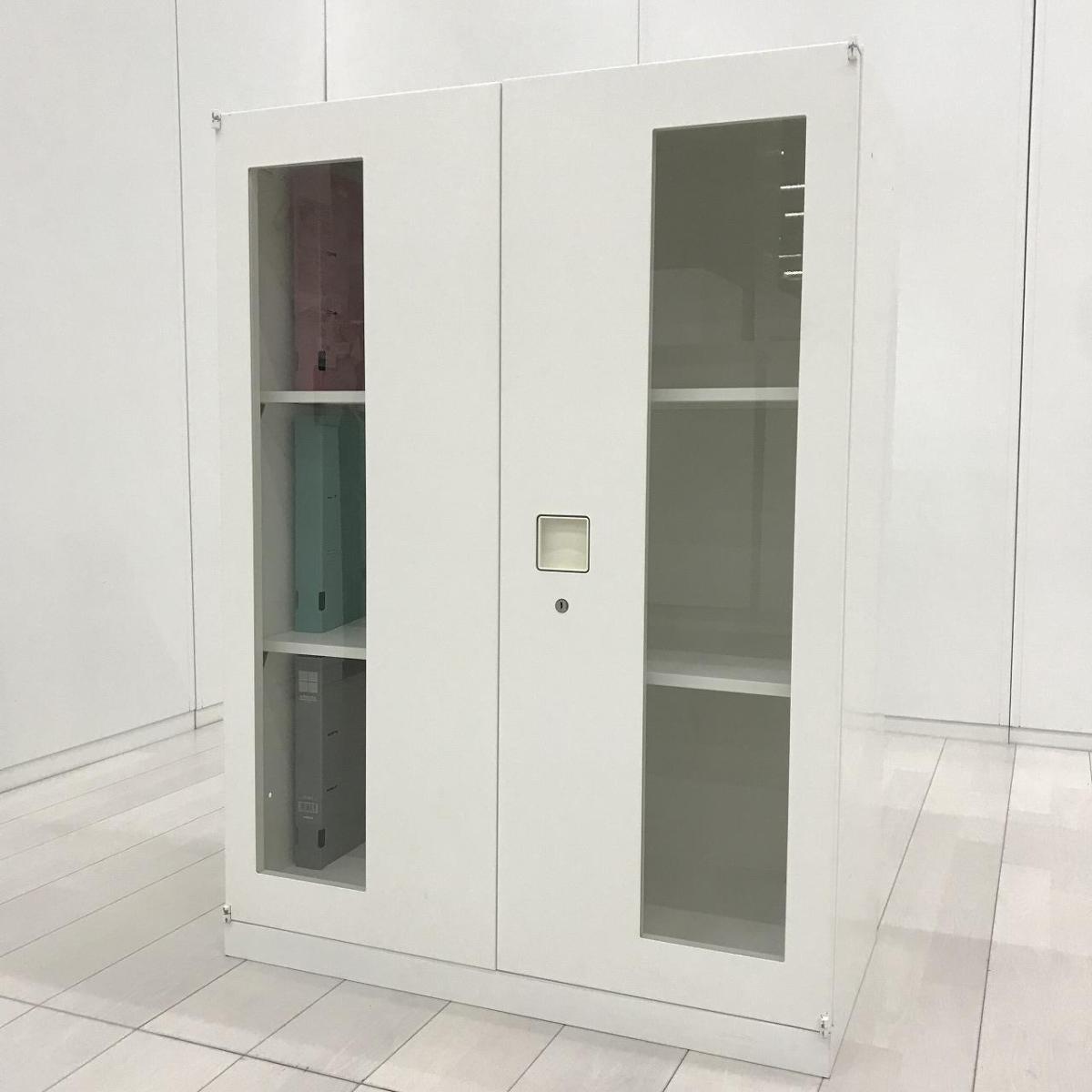入荷の少ないガラス戸タイプの両開き書庫となります!