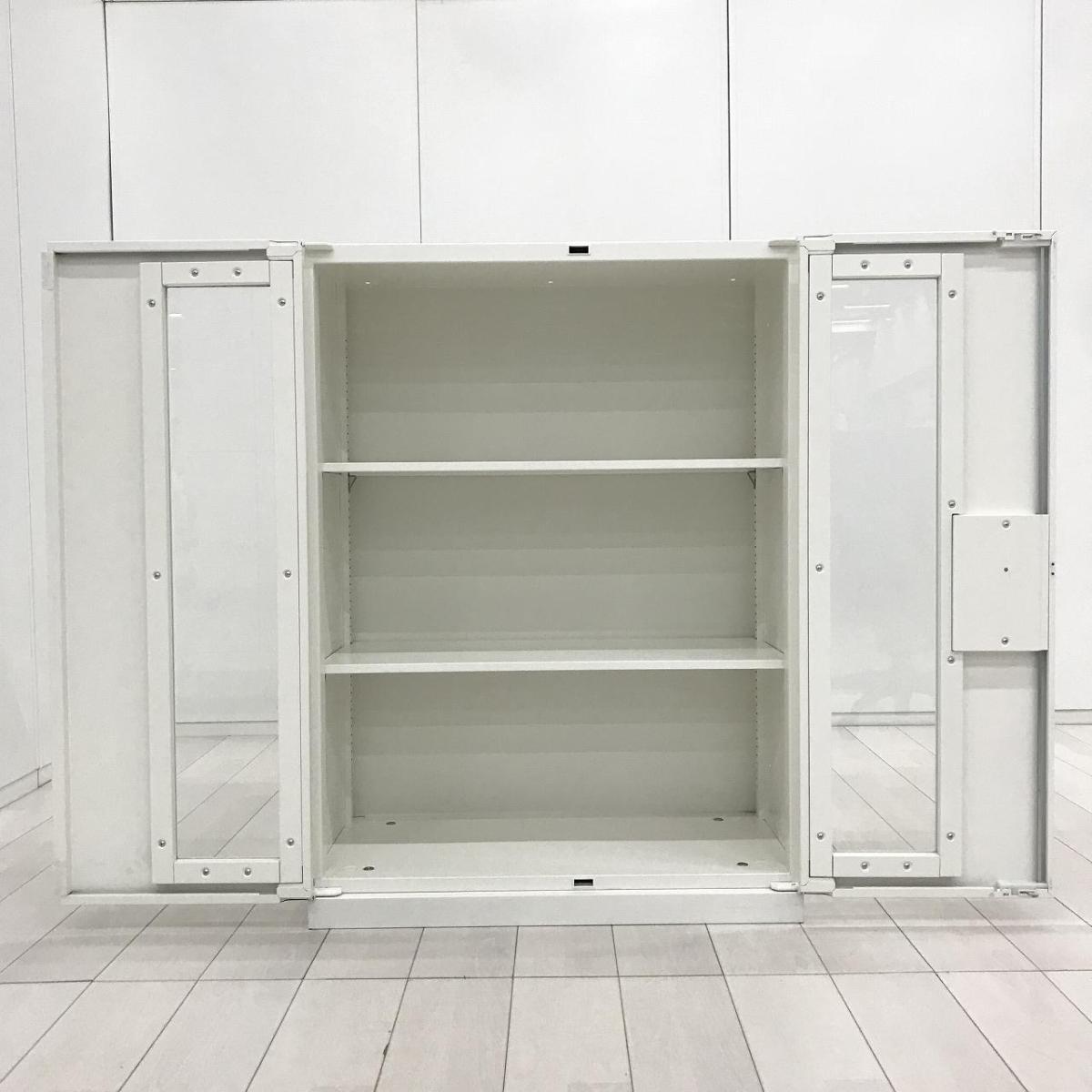 ■オカムラ(okamura)製 ■レクトラインシリーズ ■両開き書庫 ■ローキャビネット ■シリンダー鍵 ■ホワイト 【弊社使用欄:A01058060】【SN】
