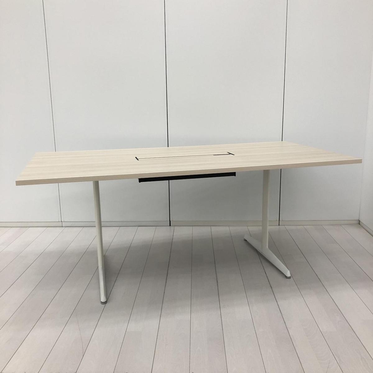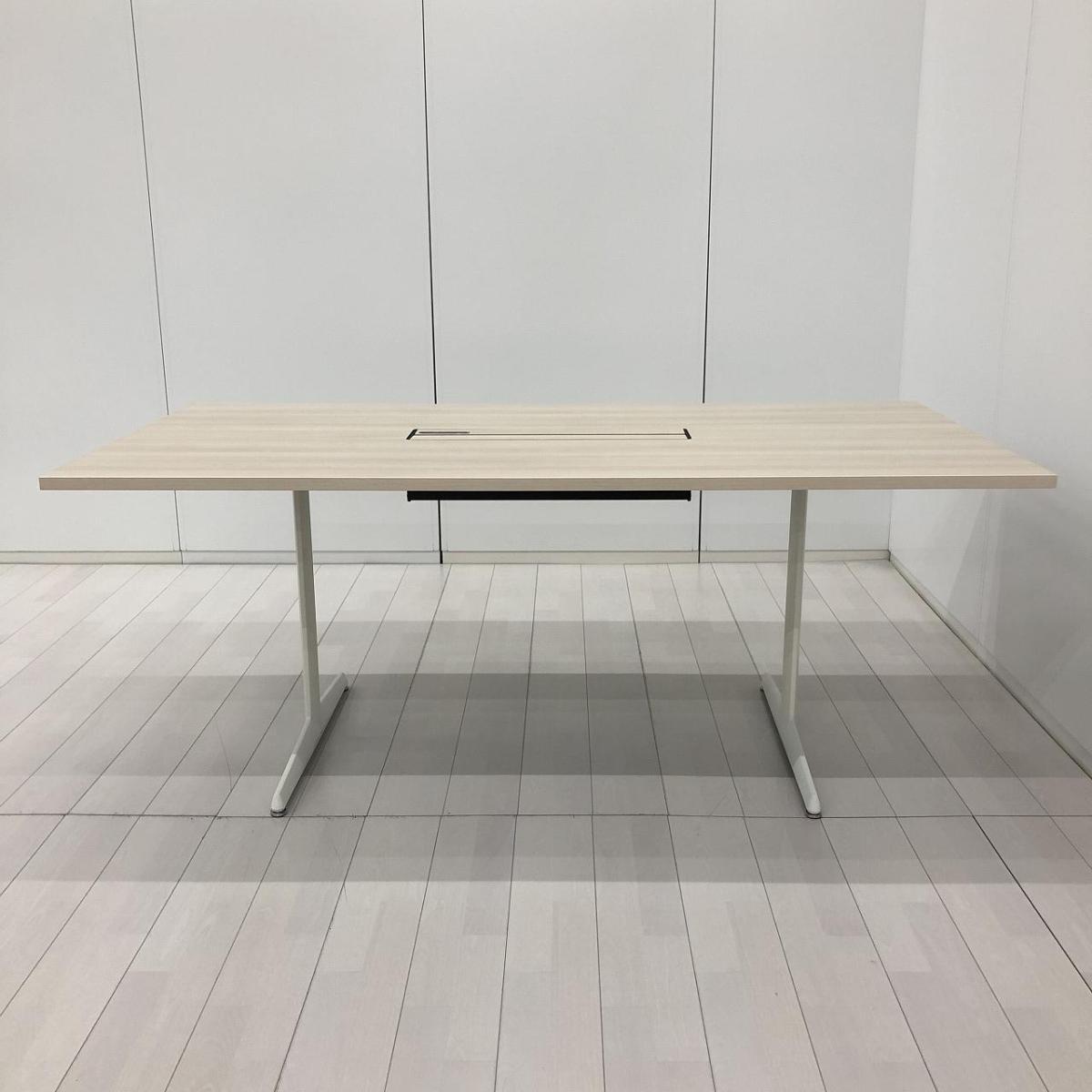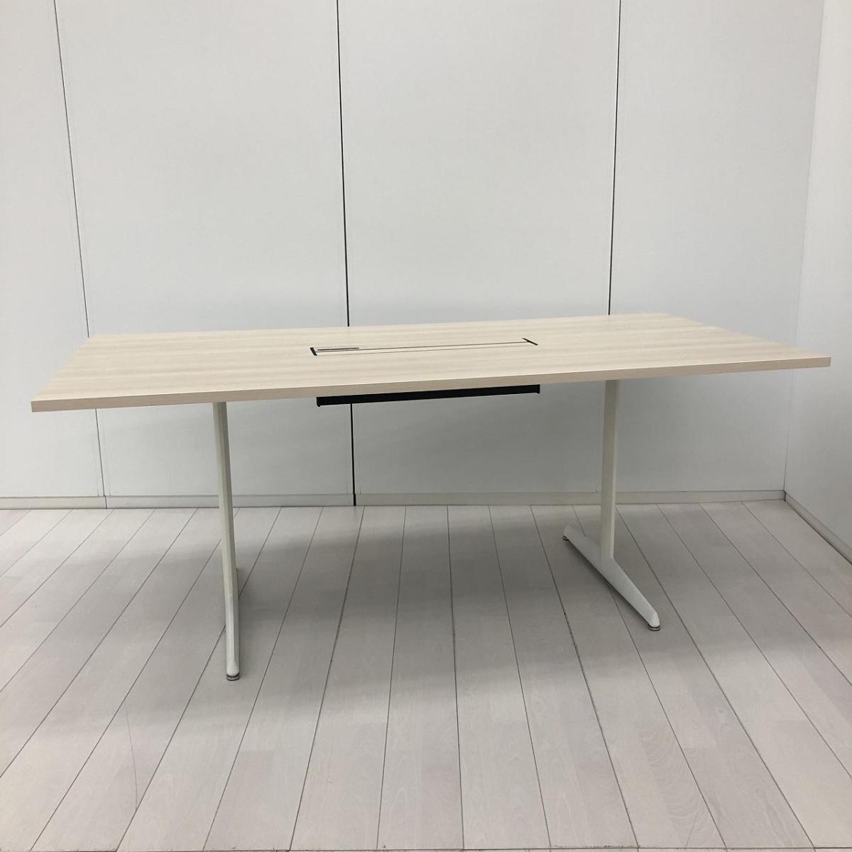【4/7(火)入荷予定の商品となります!】【4人~6人用の会議・打合せ用のテーブルとして最適!】■オカムラ(okamura)製 プレスタ(Bresta)シリーズ ミーティングテーブル 会議用 W1800×D900㎜ ■配線口あり ■天板:プライズウッドライト/T字脚:ホワイト- つくば店