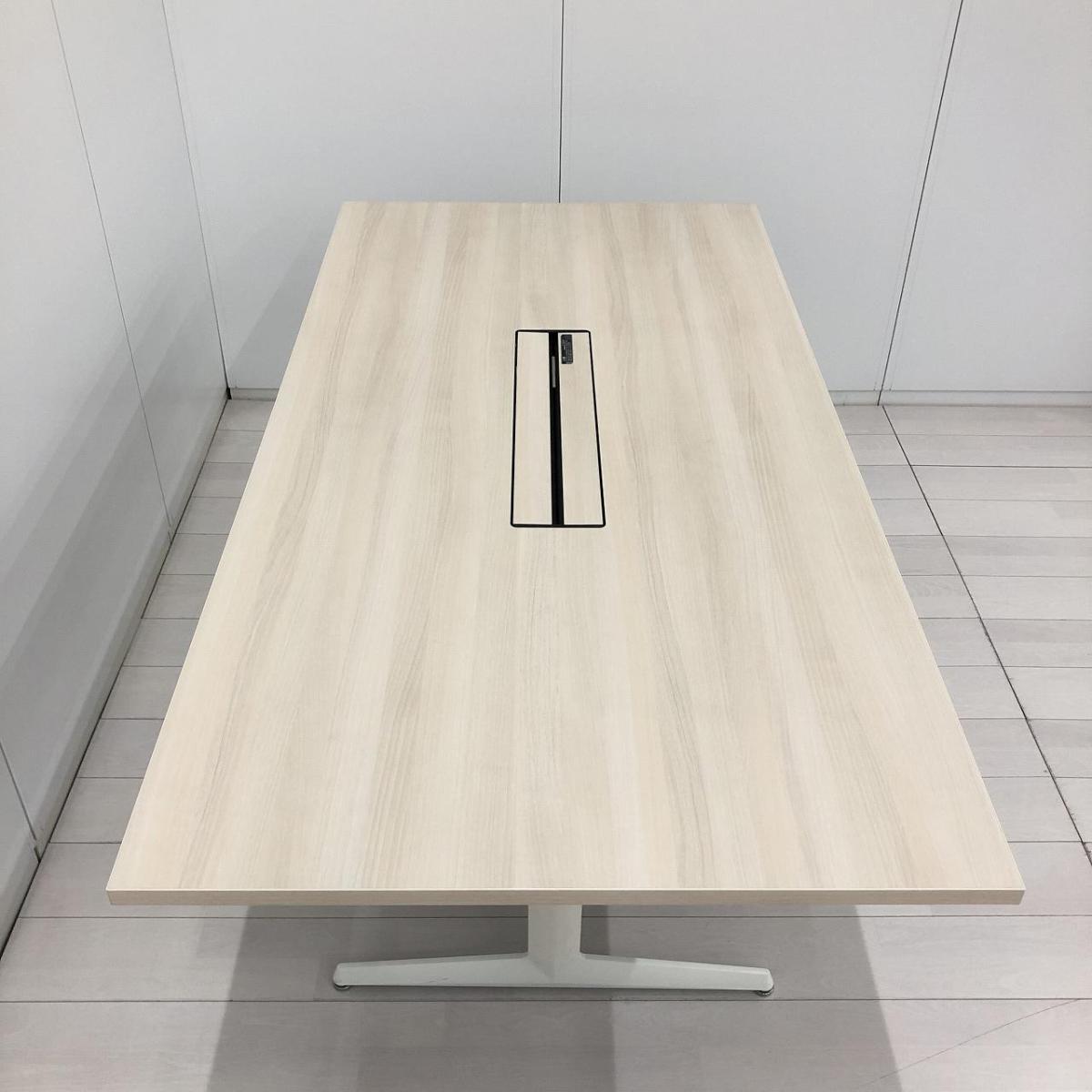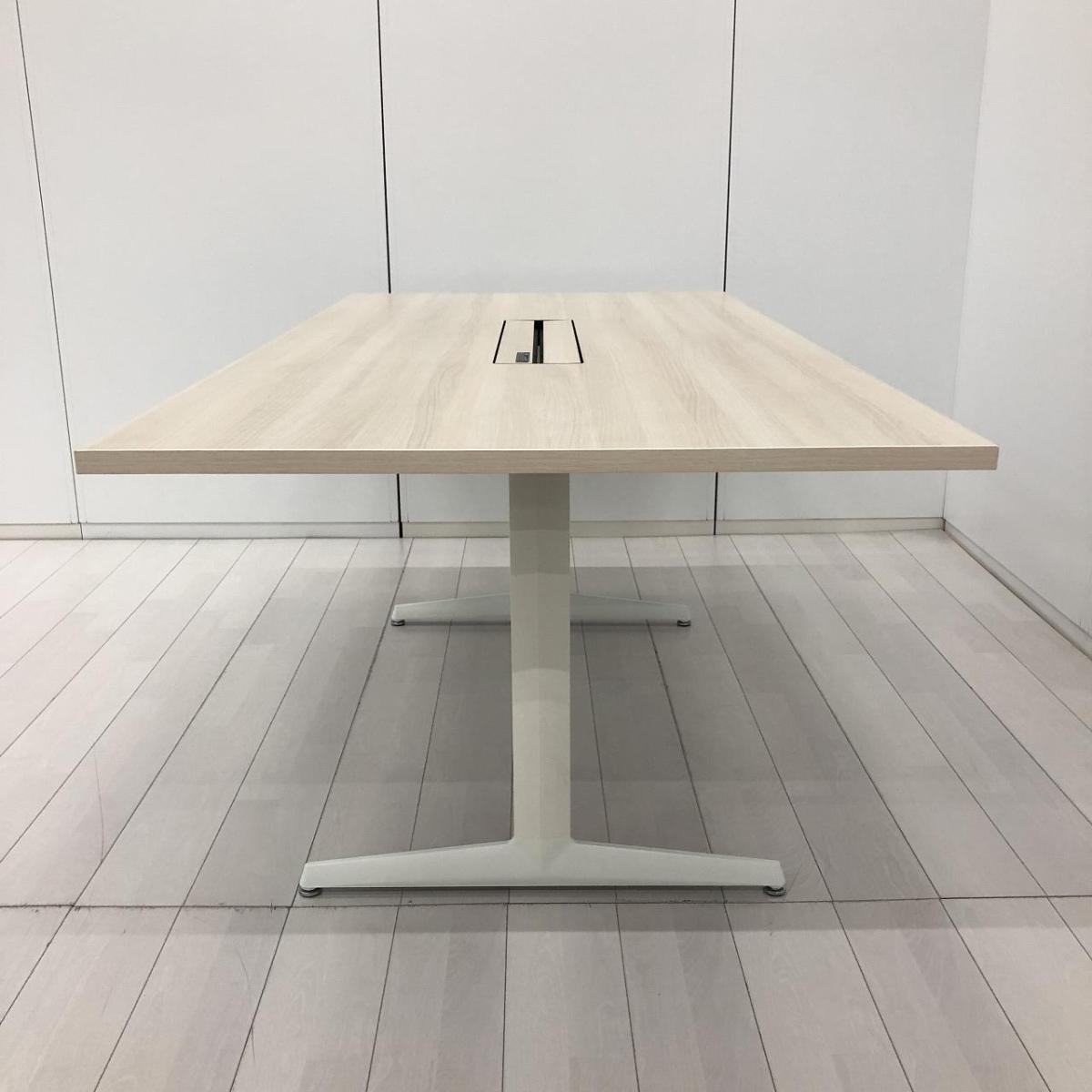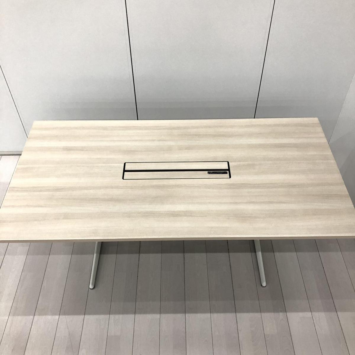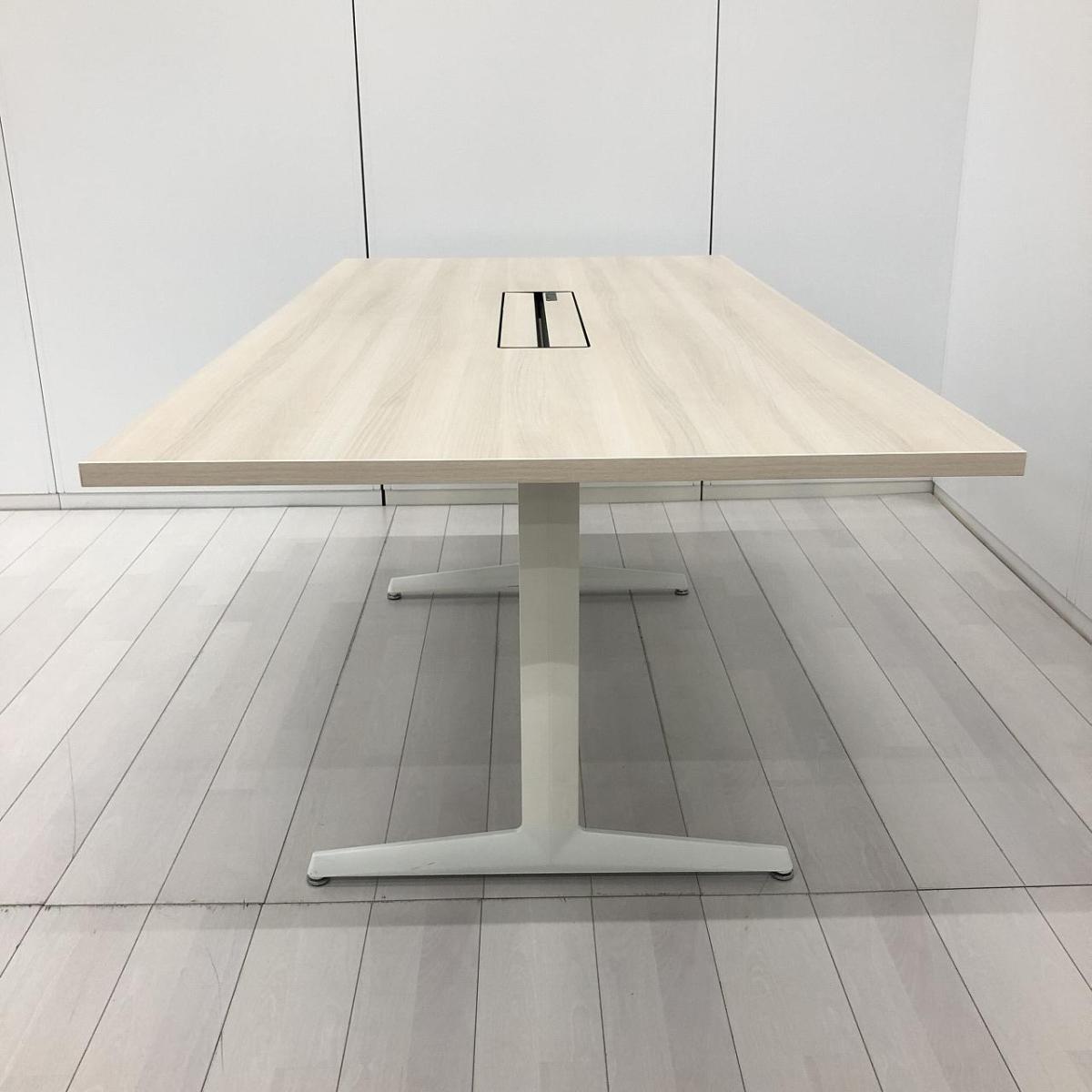 【4/7(火)入荷予定の商品となります!】【4人~6人用の会議・打合せ用のテーブルとして最適!】■オカムラ(okamura)製 プレスタ(Bresta)シリーズ ミーティングテーブル 会議用 W1800×D900㎜ ■配線口あり ■天板:プライズウッドライト/T字脚:ホワイト- つくば店