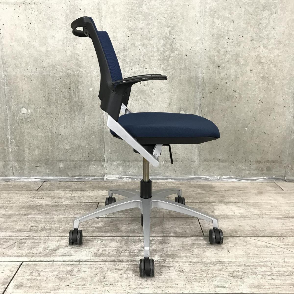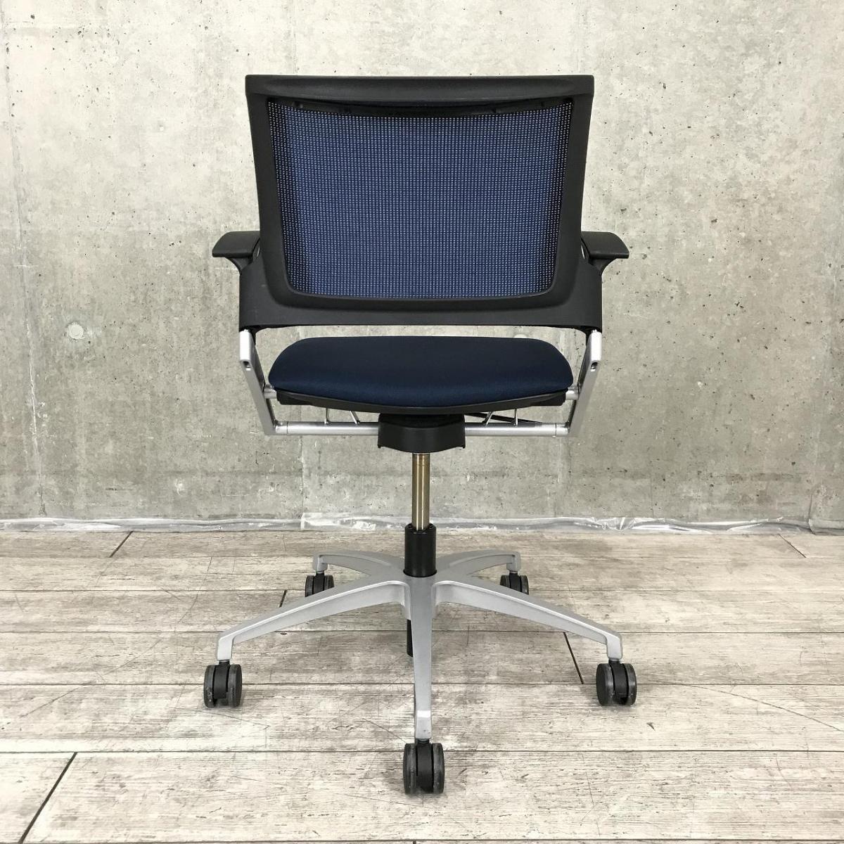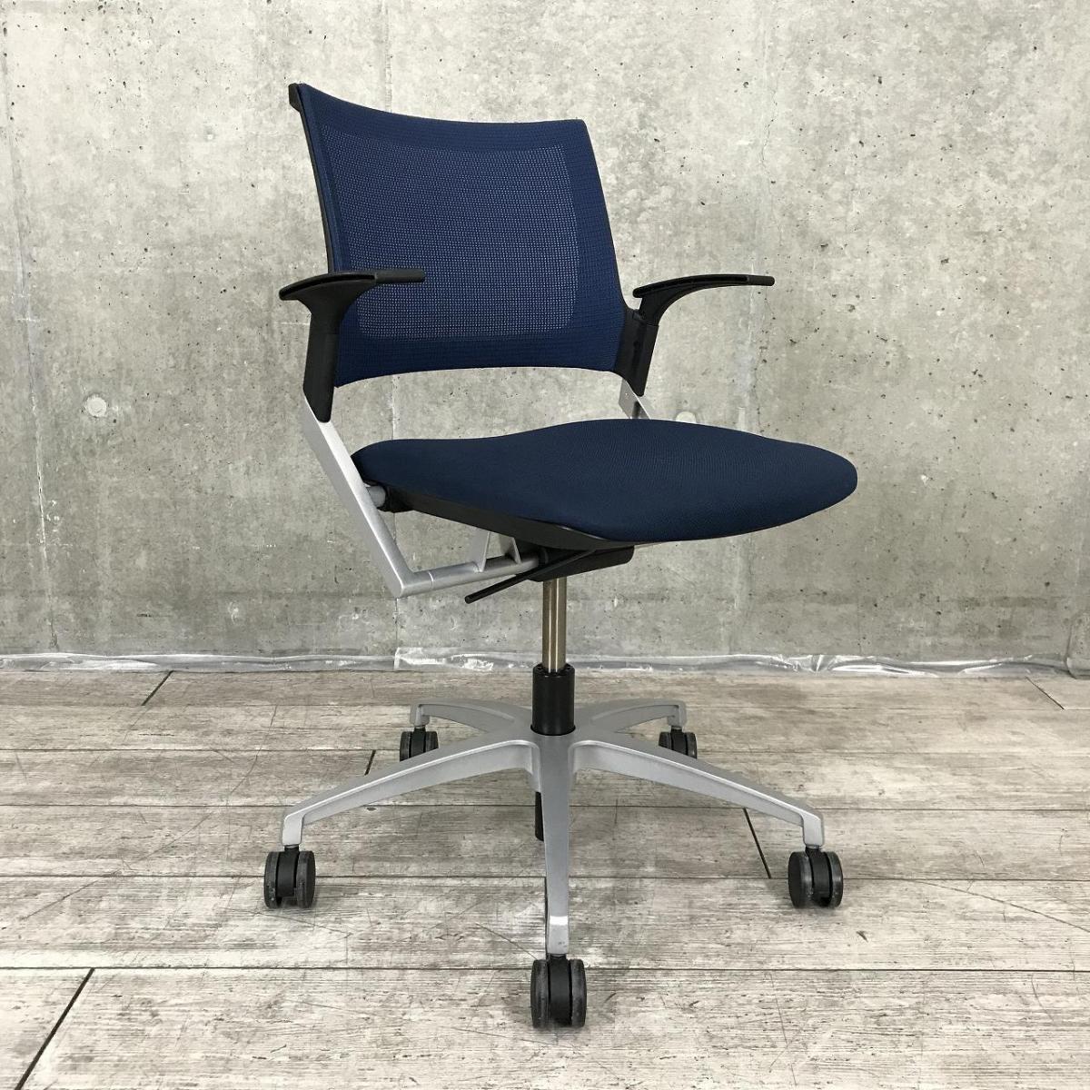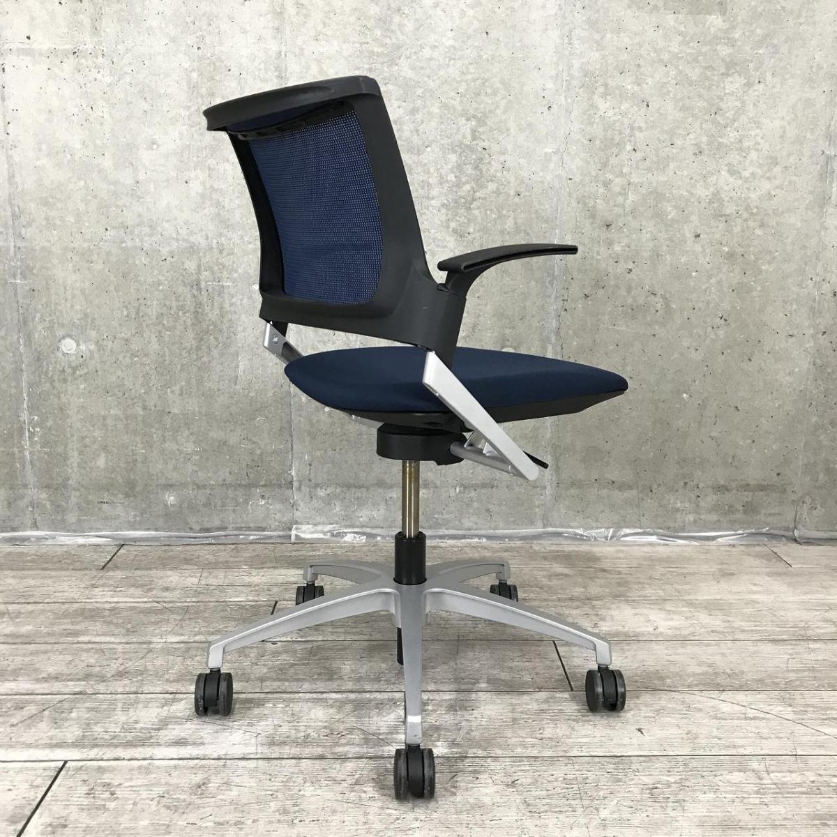 【スタイリッシュなデザインで確かな座り心地!】■イトーキ(ITOKI)製 モノン(Monon)シリーズ 肘付ミーティングチェア 背面メッシュ ■固定肘 ■回転5本脚タイプ ■ネイビーブルー×ブラックシェル【2510】弊社使用欄【A01038703】- 埼玉本店