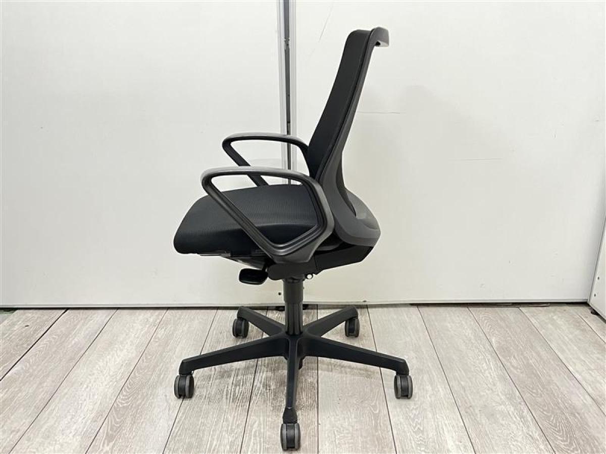 人気色/おすすめ/定番 オカムラ(okamura)製 フルーエント(Fluent)チェア 肘付 ローバック 背面メッシュ ■サークル肘 ■ブラック×ブラックフレーム