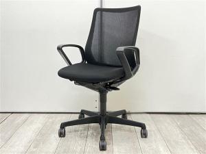 在宅ワーク/腰痛対策/おすすめ オカムラ(okamura)製 フルーエント(Fluent)チェア 肘付 ローバック 背面メッシュ ■サークル肘 ■ブラック×ブラックフレーム- 千葉店