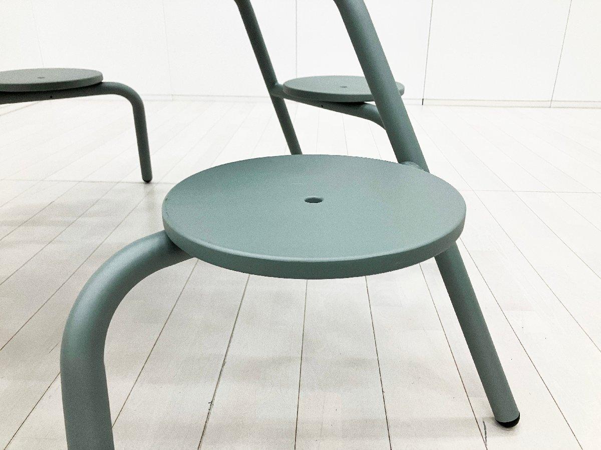 テーブルと椅子を一体化したコンパクトなデザインは、居住空間の極小化という昨今のトレンドに応えるもので、バルコニーや都市の庭でも、エクストレミスの " tools for togetherness(集うための道具)" を使うことができます。
