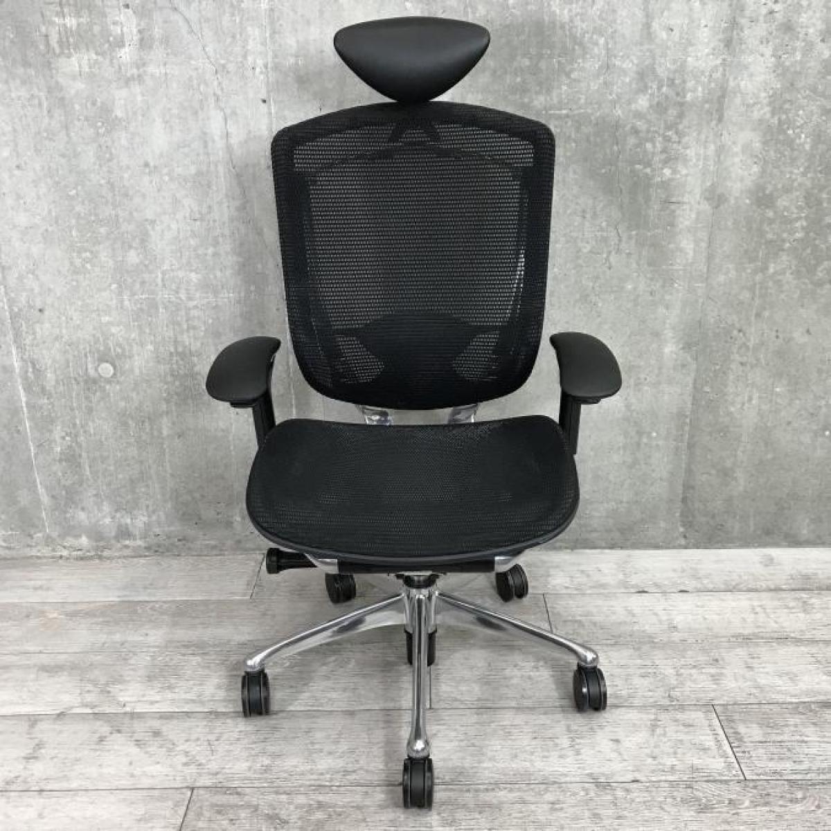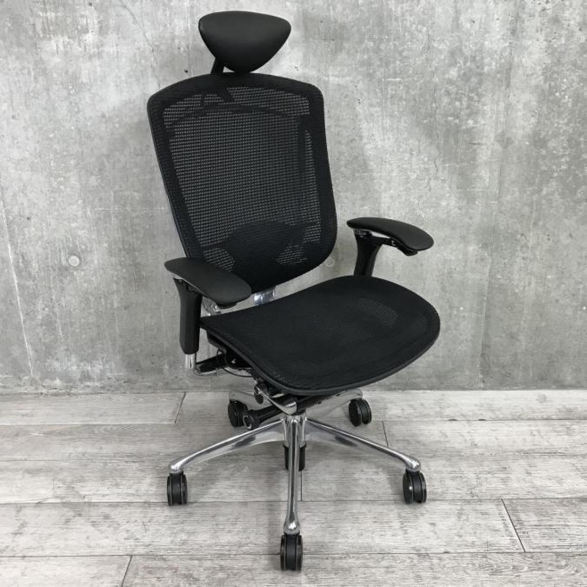 【世界で認められた革新的タスクチェア!人間工学に基づいた快適な座り心地を実現!】■オカムラ(okamura)製 コンテッサ (Contessa) ハイバック肘付き ■可動肘 背/座面メッシュ ■ランバー付き ヘッドレスト付き ■ブラック- 春日部・越谷店