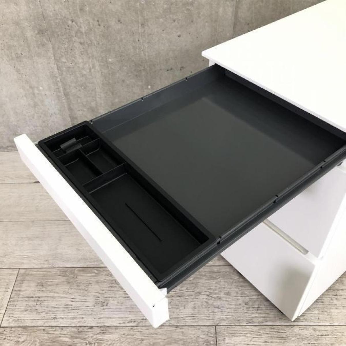 最上段はペントレー引き出し付き、2段目・3段目はA4サイズのファイル書類が収納できます。