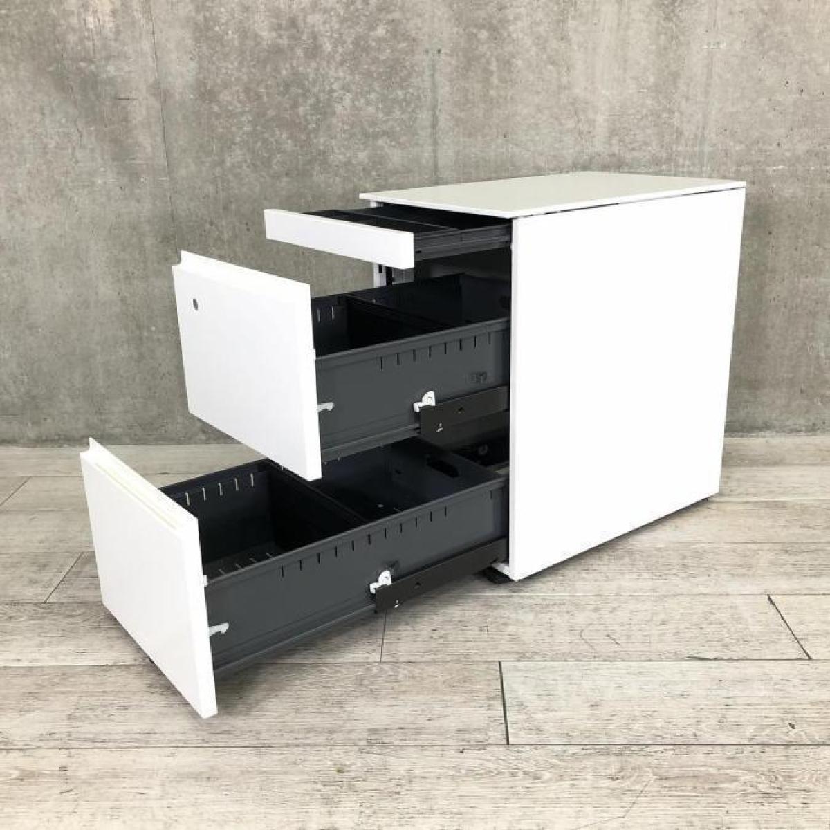 ★コクヨ製 GX ホワイト W900xD600xH645サイズ シリンダー スタイリッシュなデザイン! フリーアドレスデスクに必須な3段ワゴン! フリアド用ワゴン 3段ワゴン!!