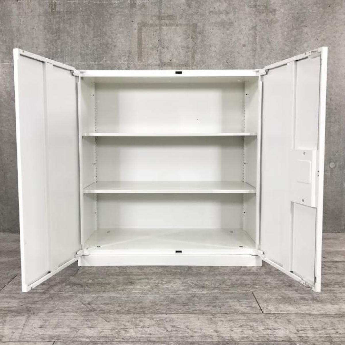 ■オカムラ(okamura)製 ■レクトラインシリーズ ■両開き書庫 ■ローキャビネット ■シリンダー鍵 ■ホワイト 【弊社使用欄:A01058060】【SN】