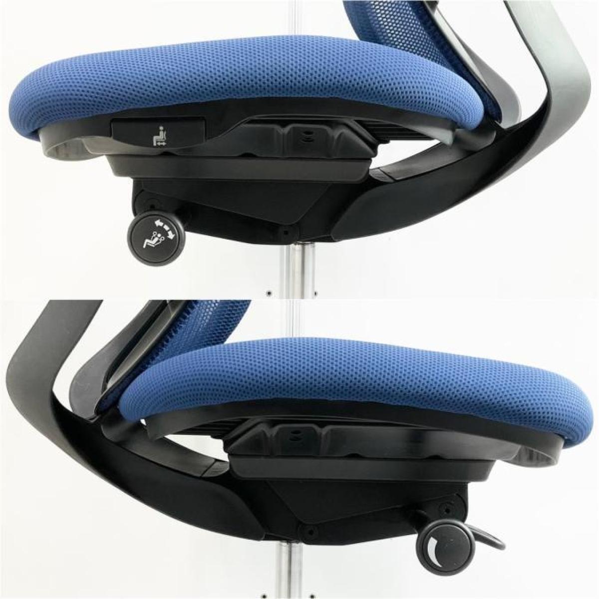 【前傾チルト機能付き!オカムラ製品で最も人気を集める高機能メッシュチェア!】■オカムラ(okamura)製 シルフィー(Sylphy)チェア ローバック 肘無し 背面メッシュ ■ミディアムブルー×ブラックシェル ■コートハンガー付き- つくば店