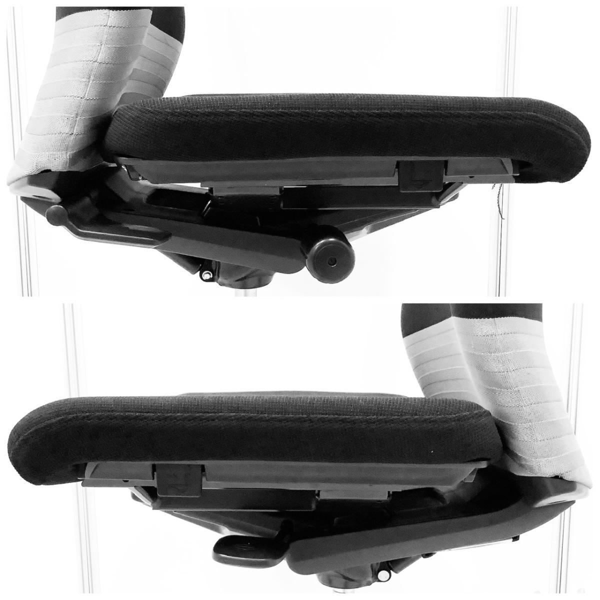 - 深く座りたい人、浅く座りたい人など利用者にあった形で座面が前後45mm範囲で調節できるので、腰の負担を軽減します。