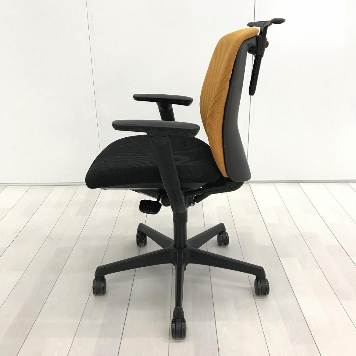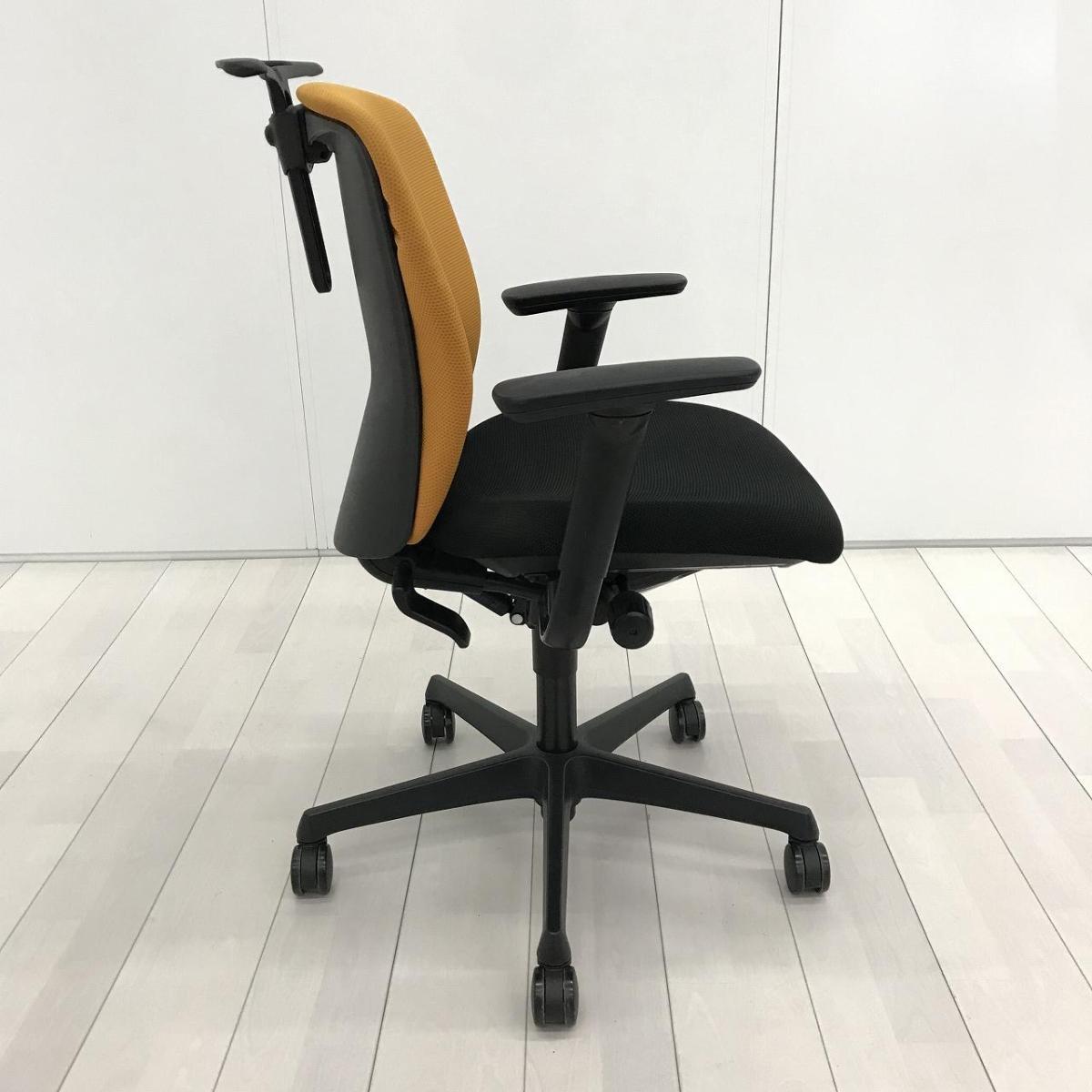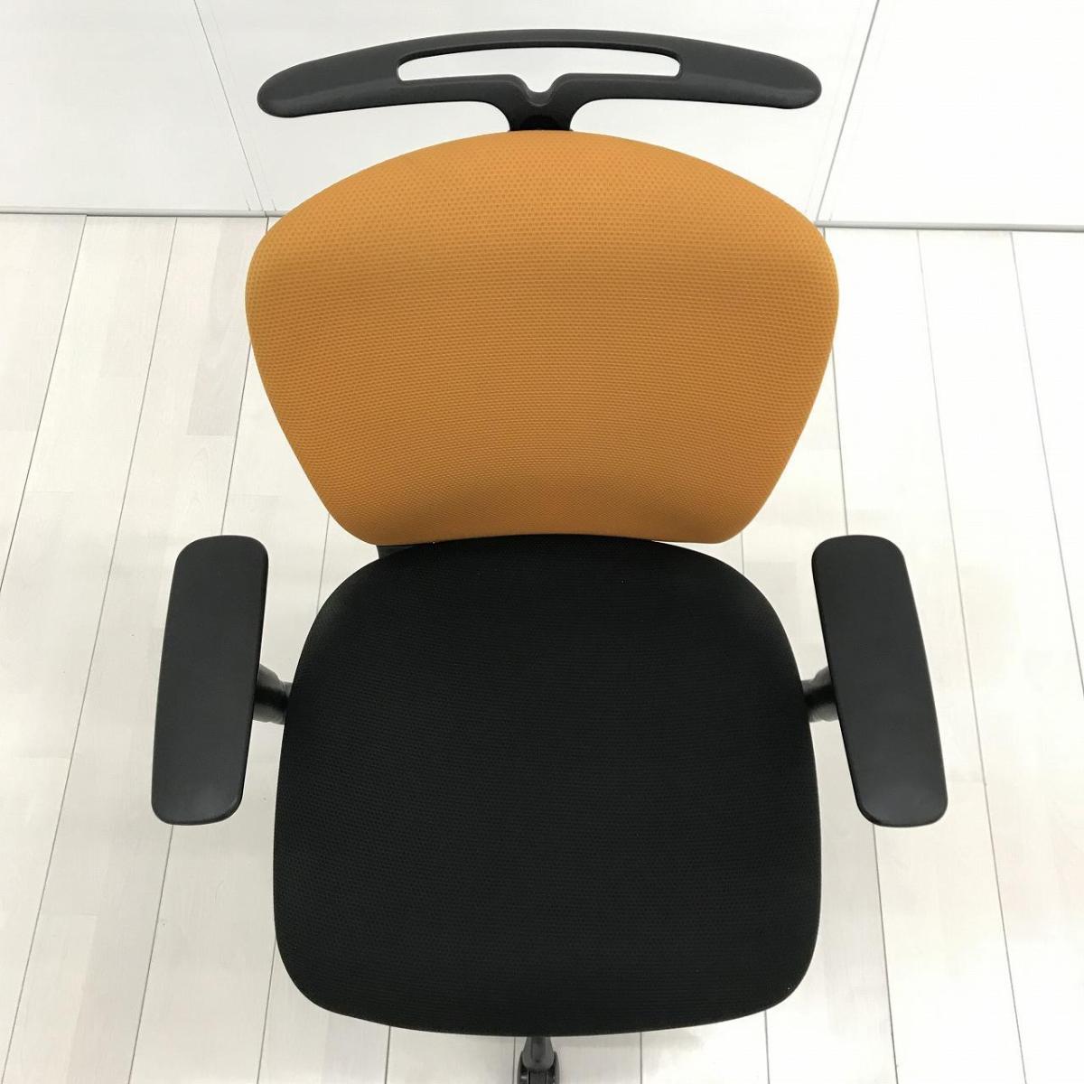人気オカムラのシーティング スラート ローバックモデル アジャストアーム&コートハンガー搭載 背オレンジ×座ブラック【愛知・名古屋・豊田・静岡・浜松】