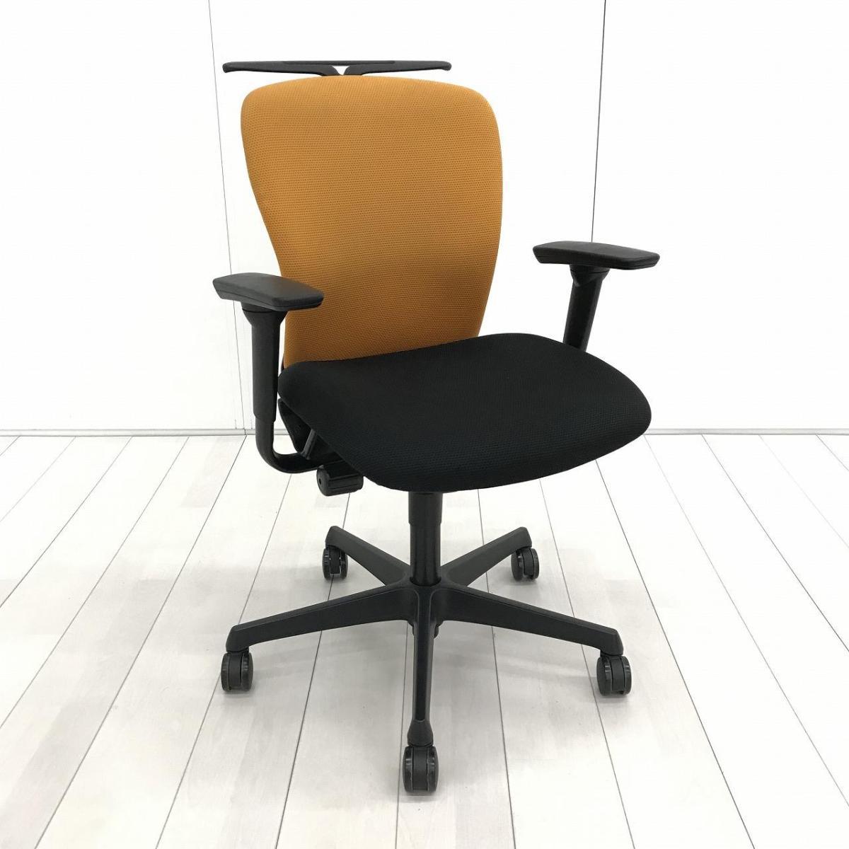 【シンプルなデザインと厚みのあるクッションが大人気!機能充実のワーキングチェア!】■オカムラ(okamura)製 スラート(sulato)チェア 肘付き ローバック ■可動肘 ■背面:オレンジ × 座面:ブラック 【弊社使用欄:A01061080】【KN】