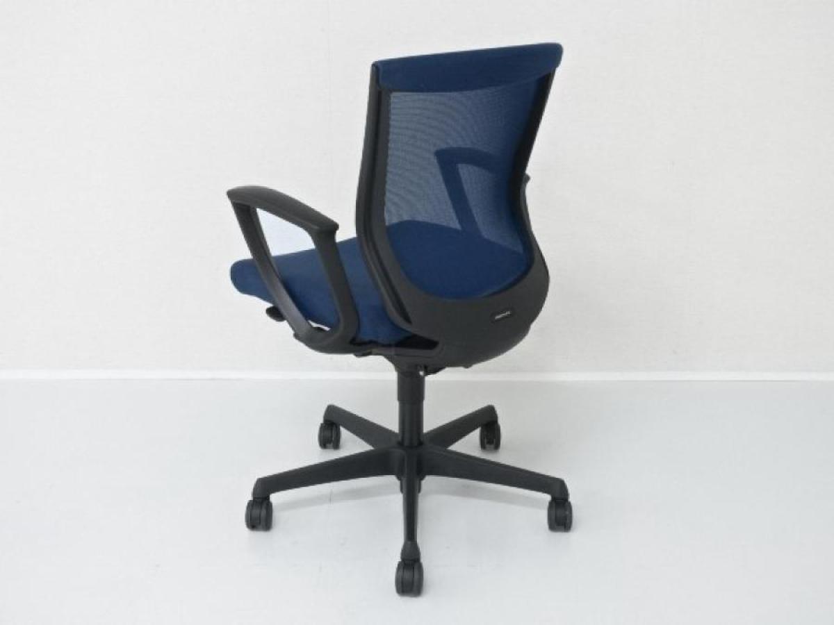 【長時間のデスクワークもランバーが快適にサポート!】■オカムラ(okamura)製 エスクード(ESCUDO)チェア 肘付き ローバック 背面メッシュ ■固定肘 ■ランバー付き ■ダークブルー【弊社使用欄:A01047663】