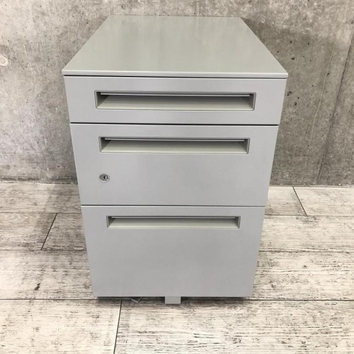 【デスク下に置いて収納アップ!使い勝手抜群のキャスター付き!】■ウチダ(UCHIDA)製 STワゴン 3段ワゴン デスクインワゴン W395×D585×H600mm ■シリンダー錠 ■グレー- 岡山サテライト
