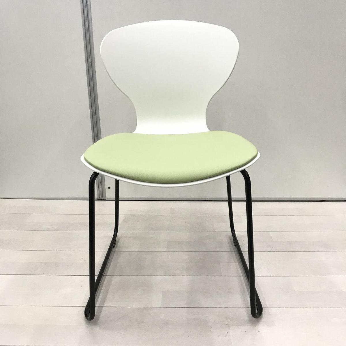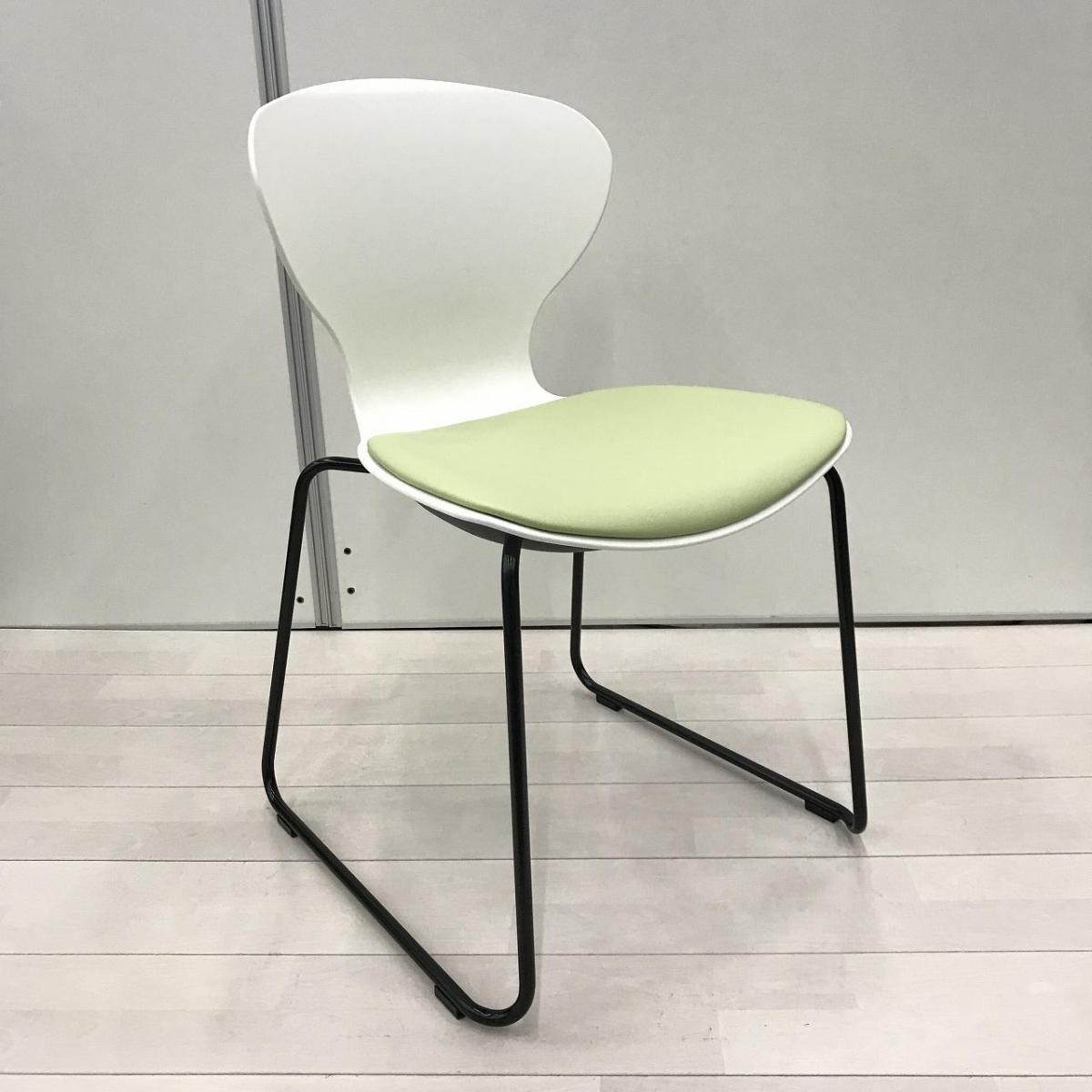 【デザイン性のあるスタッキングチェア!打合せや会議室、休憩スペースなど使いどころ様々!】■オカムラ(okamura)製 9370シリーズ スタッキングチェア ミーティングチェア ■背面:ホワイトシェル/座面:ビニール布×ミントグリーン- 在庫数