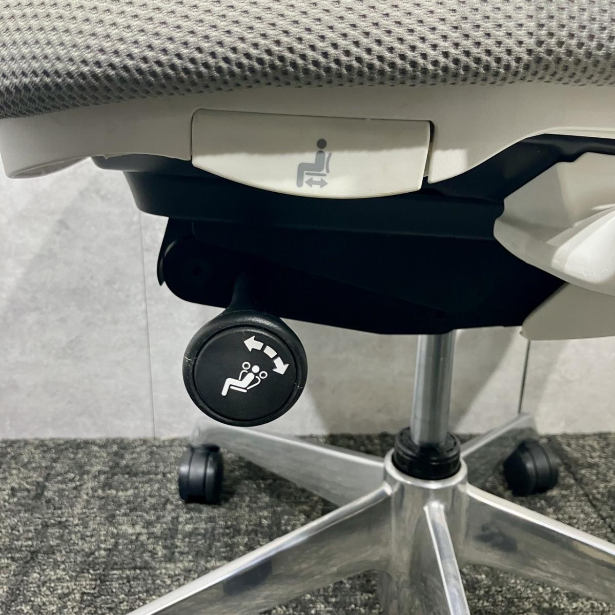 - 座面右下のダイヤル操作で、リクライニングの強弱調整が行えます。これまでのダイヤル式よりも、少ない回転数で、最弱?最強の調整が可能です。