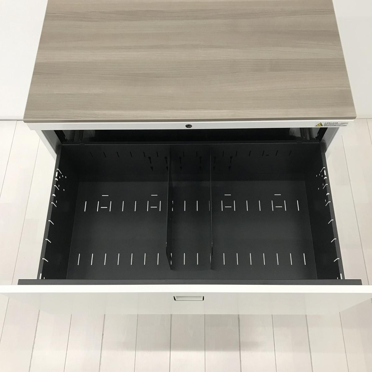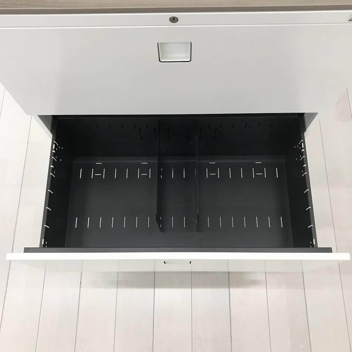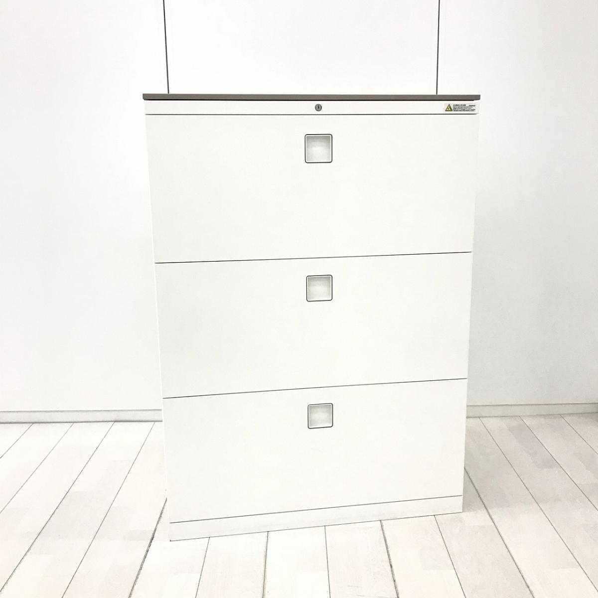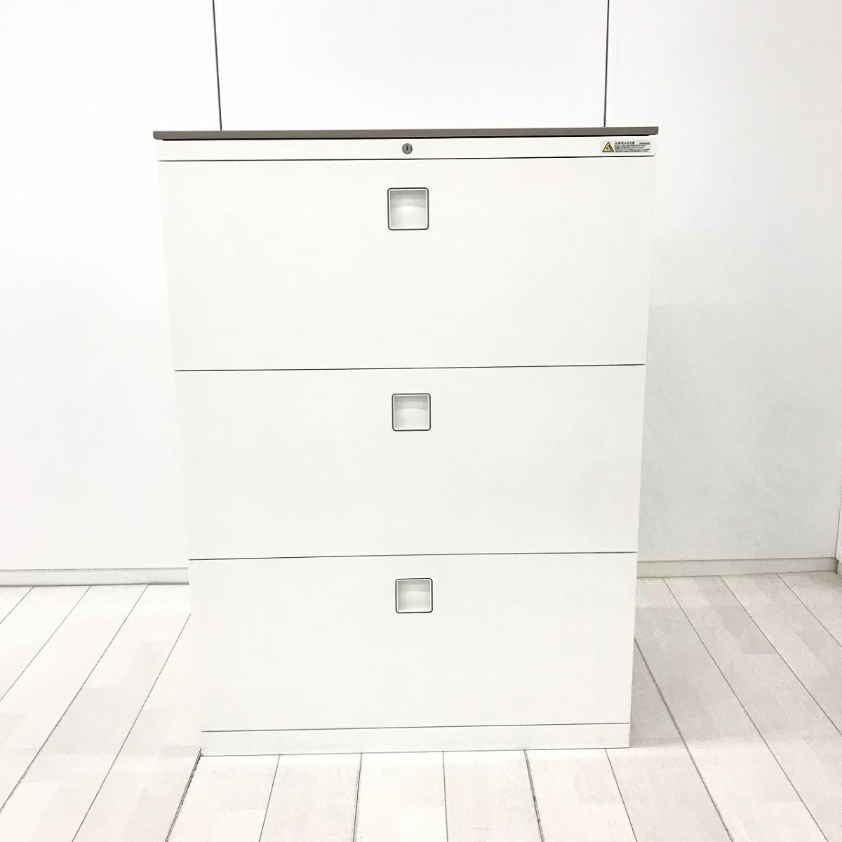 【天板付きなのでカウンターとしても使える!大容量の三段キャビネッ!ト】■オカムラ(okamura)製 レクトラインシリーズ 3段ラテラル書庫 ■シリンダー錠 ■ホワイト 【弊社使用欄:A01059739】