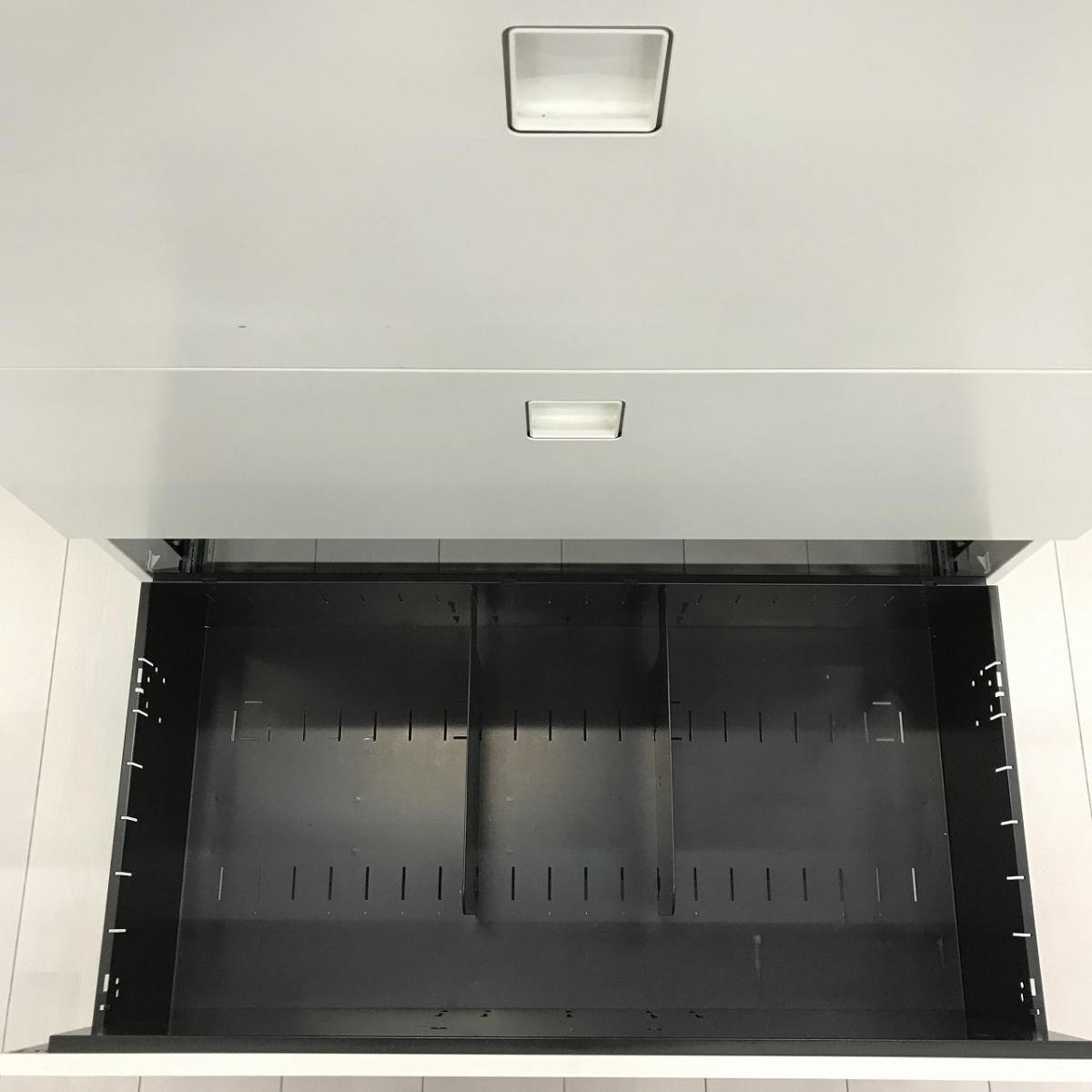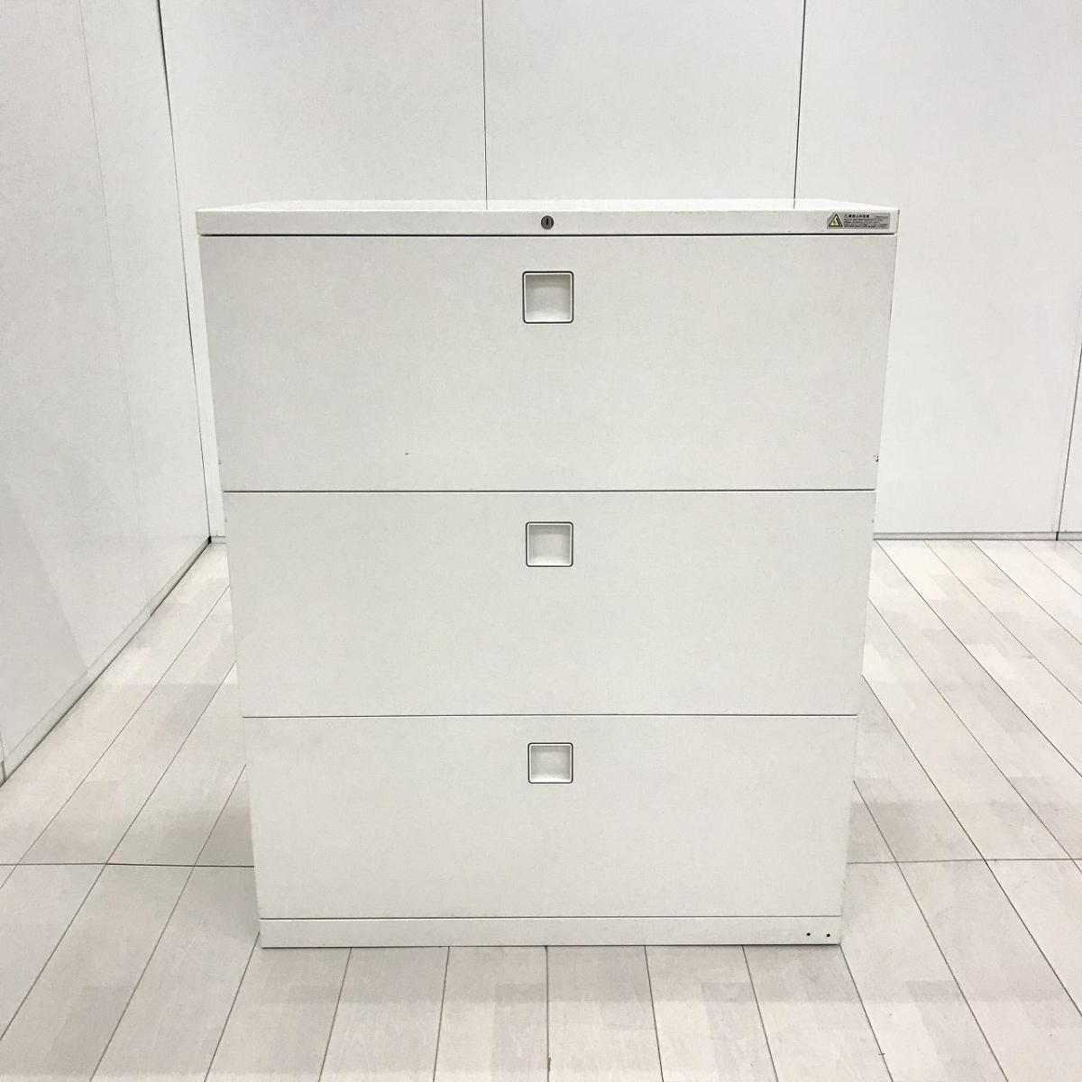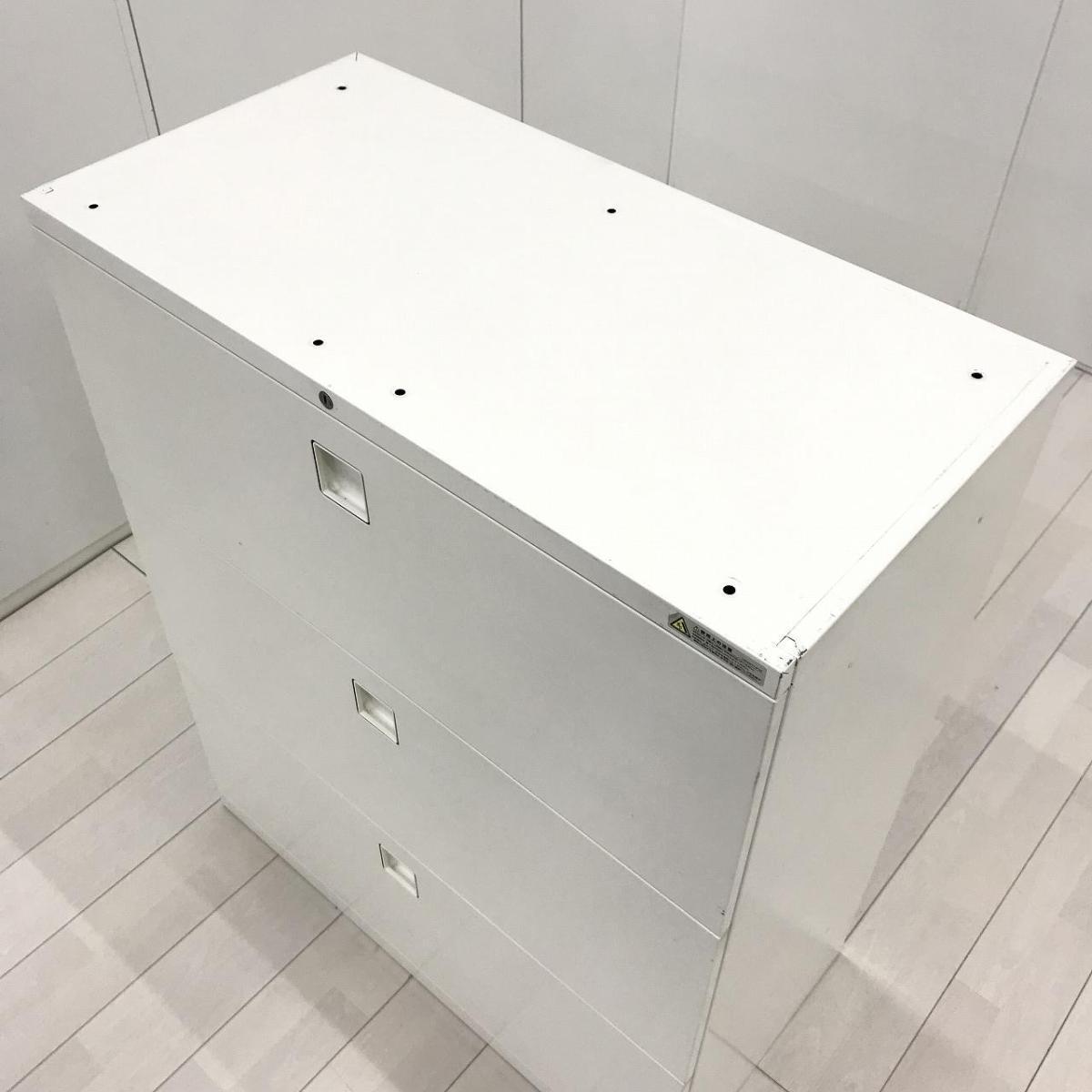 【オフィスの必需品!大容量の三段キャビネット】■オカムラ(okamura)製 レクトラインシリーズ 3段ラテラル書庫 ■シリンダー錠 ■ホワイト【天板付きなのでカウンターとしても使える!】