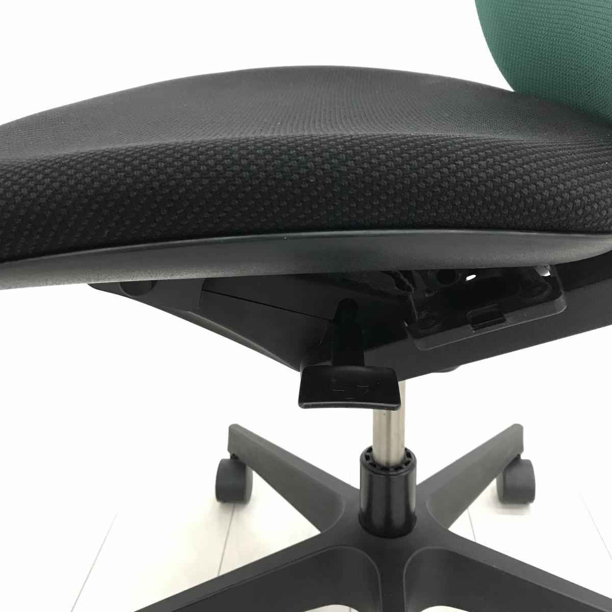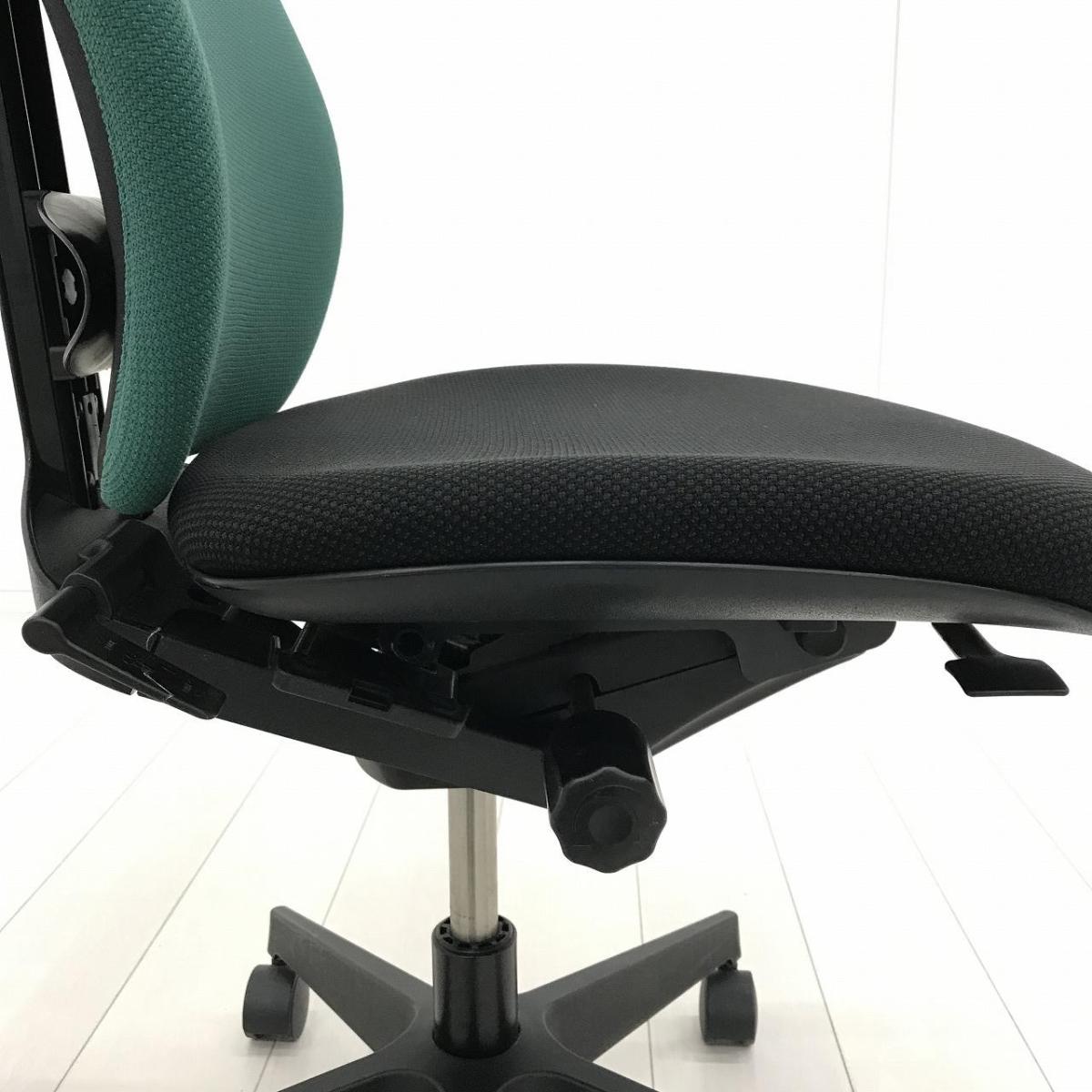 例えば、座面は、イトーキ独自の"ベンディングシート"という機構により、クッション、インターシェル、空洞という三層構造になっています。 この真ん中に挟まっているインナーシェルが、着座時の姿勢に合わせて体重を分散してくれるので、どんな姿勢でも体になじみ、疲労を軽減してくれます。 さらに、座面は前後に4センチほど奥行きを調整でき、前傾姿勢で座りたい、深く腰掛けたい、膝裏を圧迫されたくないなど、個人の好みに合った快適さにカスタマイズが可能となっています。