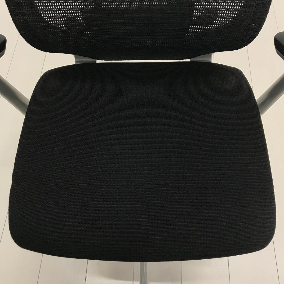 もちろん座り心地もコンテッサの直系ですから快適です。座面の素材はクッションとメッシュの2タイプあります。私、個人的には座面の中心部分でも外側でもテンションが変わらないクッション素材が、足を閉じても開いても快適なので推しです!"