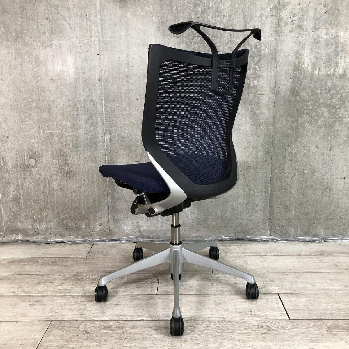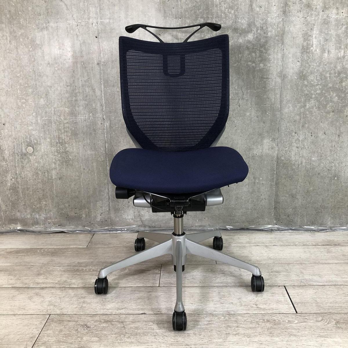 【オフィスの執務室、会議室におすすめ!】■オカムラ(okamura)製 バロン(Baron)チェア ローバック 肘無し ■背面メッシュ ■ハンガー付 ■色:ネイビーブルー×ブラックシェル【国産メッシュチェアの代表格!】