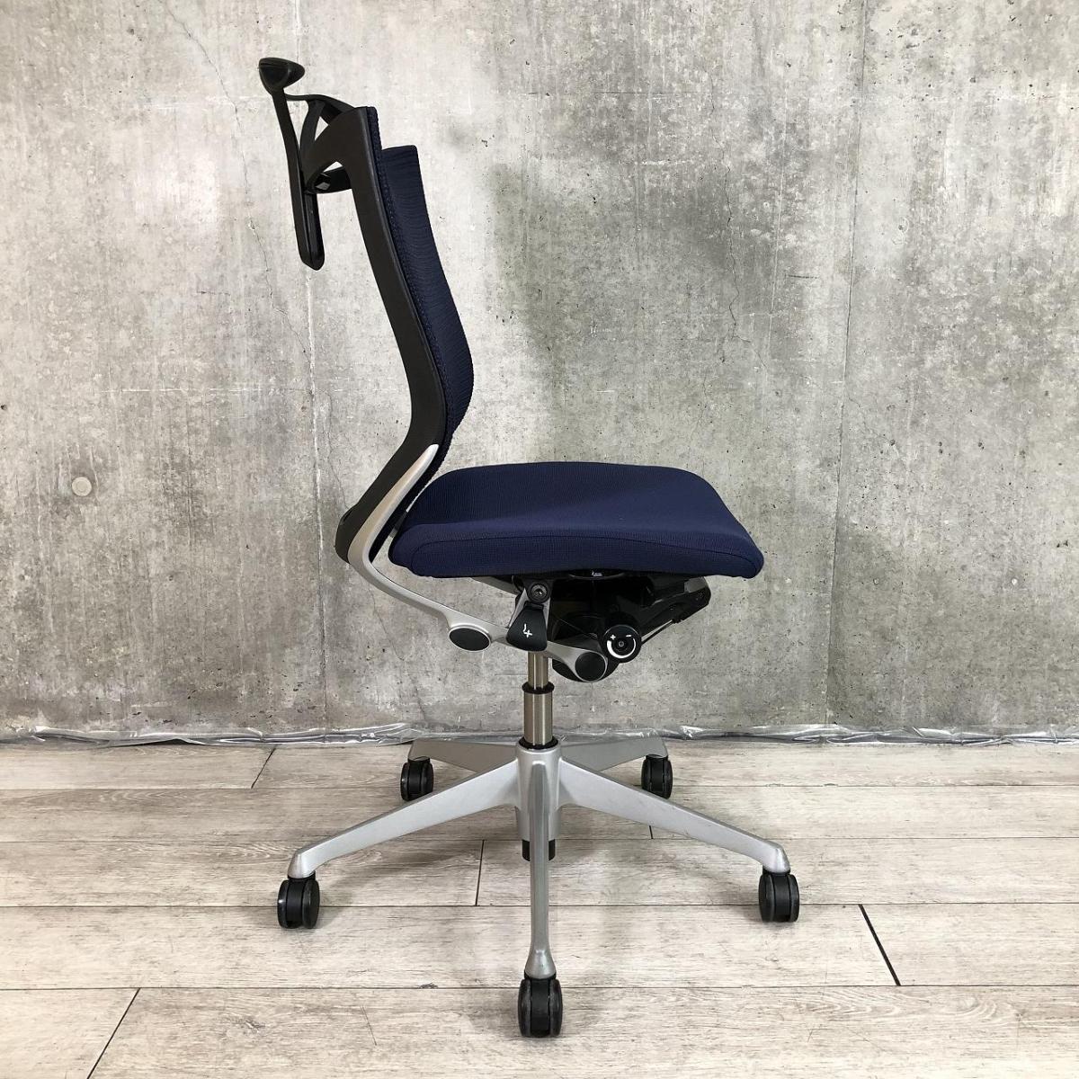 【座面新品に付け替え済み!】ワンランク上の快適チェア!オールメッシュ仕様の大人気高級チェアが入荷! ■オカムラ/バロンチェア(Baron)/背面:ミディアムブルー/座面ダークブルー