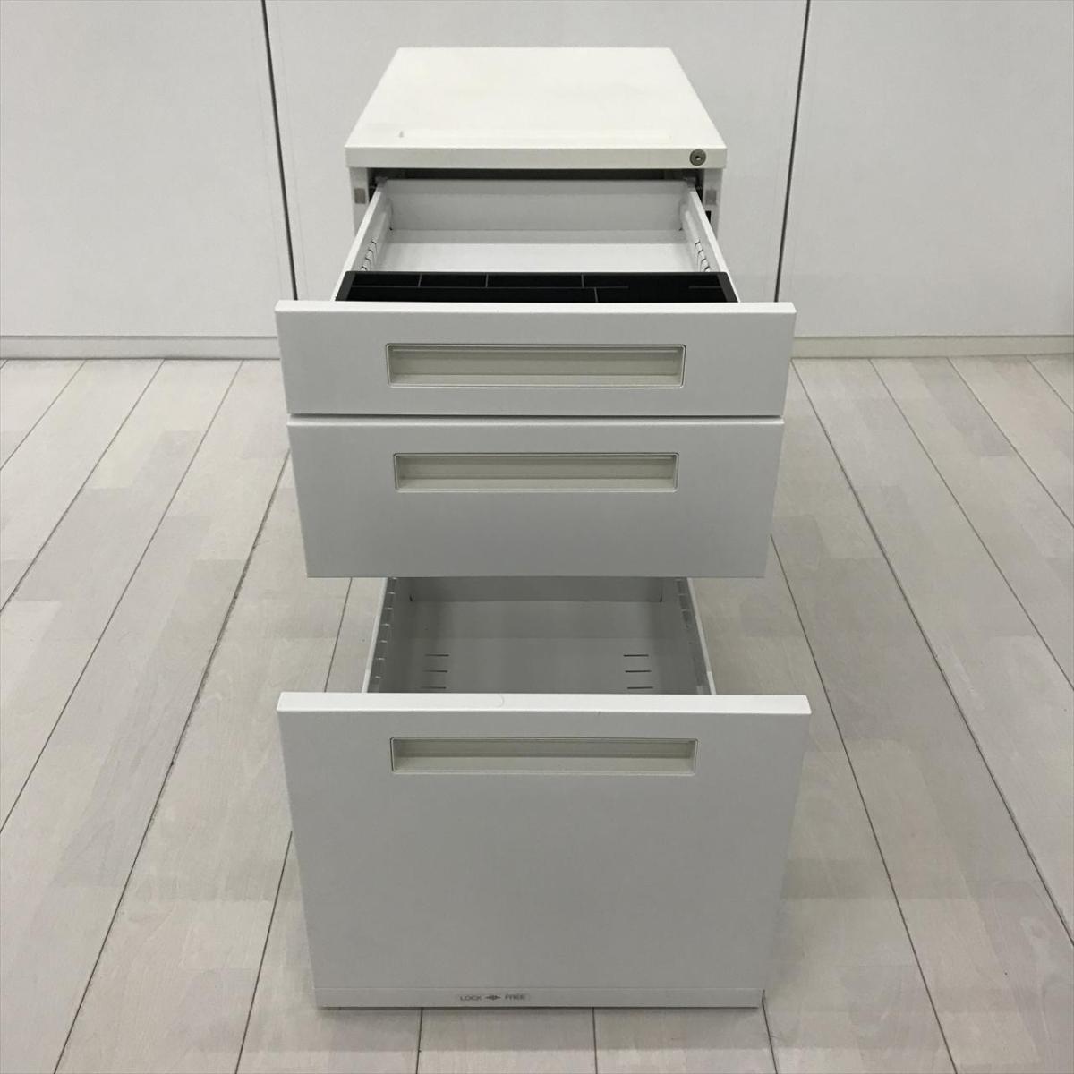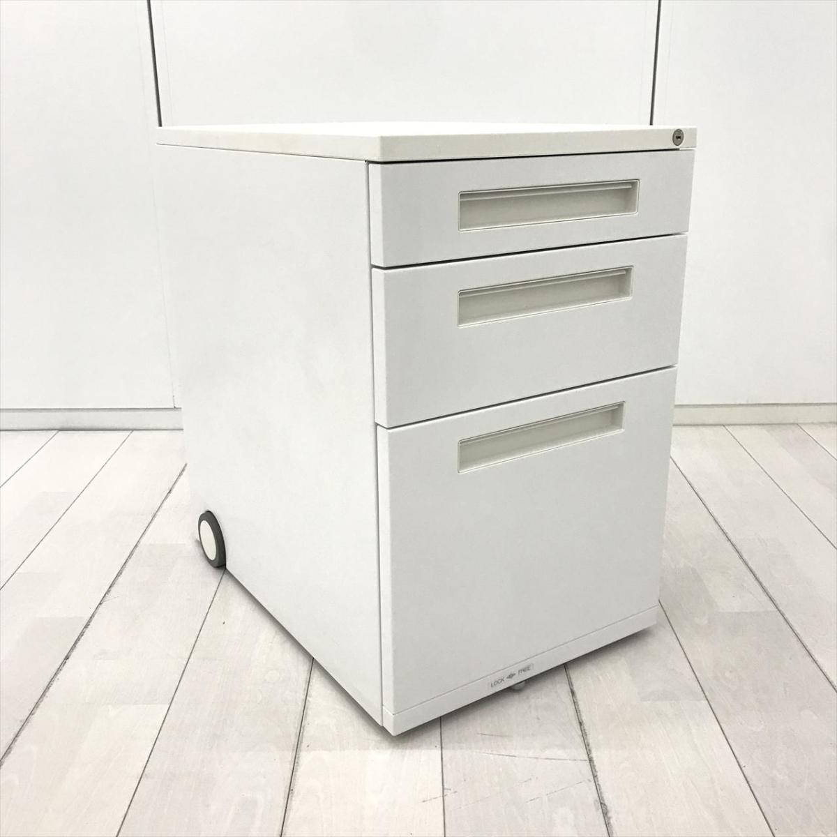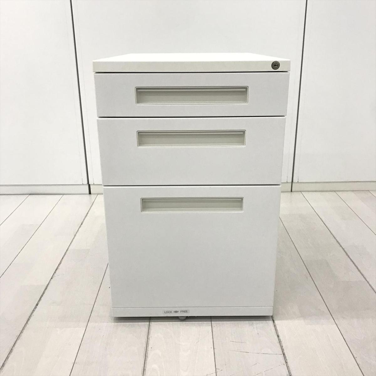 【人気のホワイトカラーの入荷です!A4ファイルも沢山収納可能!】■プラス (PLUS) 製 デスクインワゴン3段 ■高さ650mm ■ホワイト ■シリンダー鍵- 在庫数
