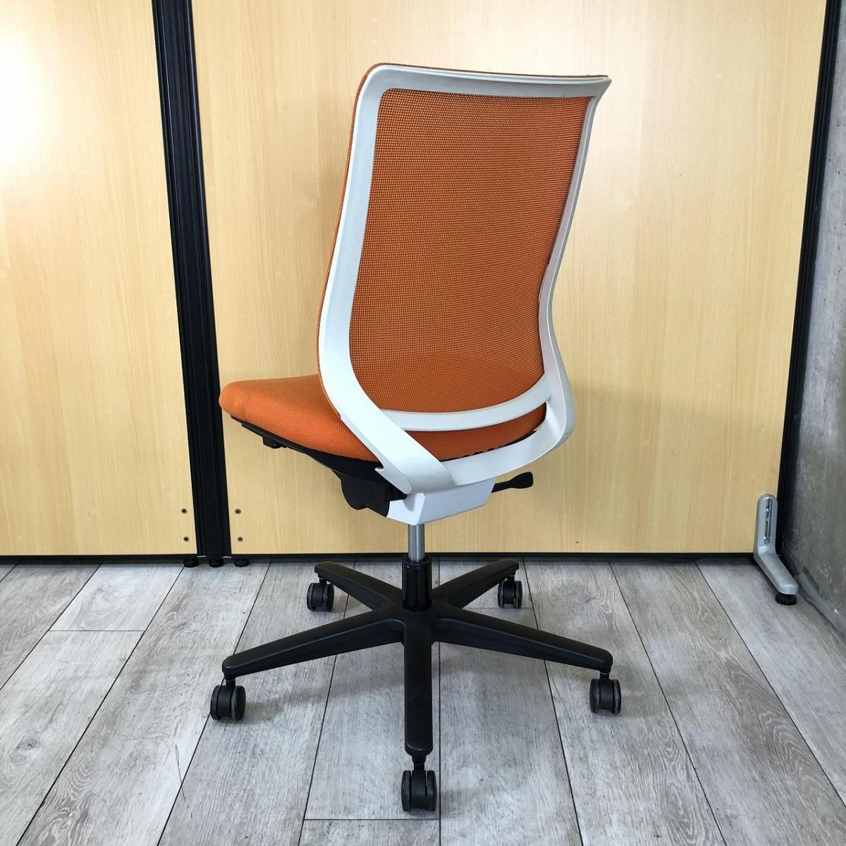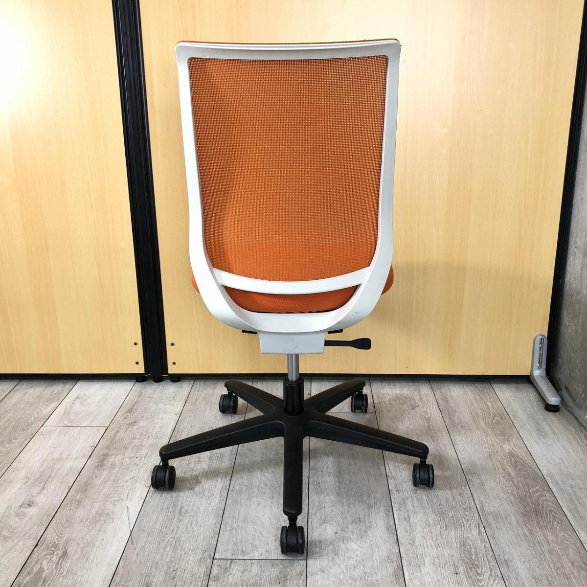 【4脚入荷】【テレワークにも最適!快適な座り心地と充実機能!】■コクヨ(KOKUYO)製 ミトラ(Mitra)チェア 肘無し ローバック 背面メッシュ ■タンジェリンオレンジ × ホワイトシェル