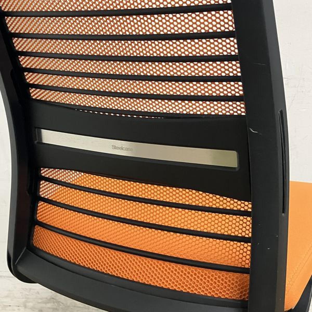 【在庫入替セール】スチールケース(Steelcase)シンクチェア 肘無しモデル 背メッシュで軽快なデザイン性 タンジェリン(オレンジ) ランバーサポート付き- 名古屋千種店