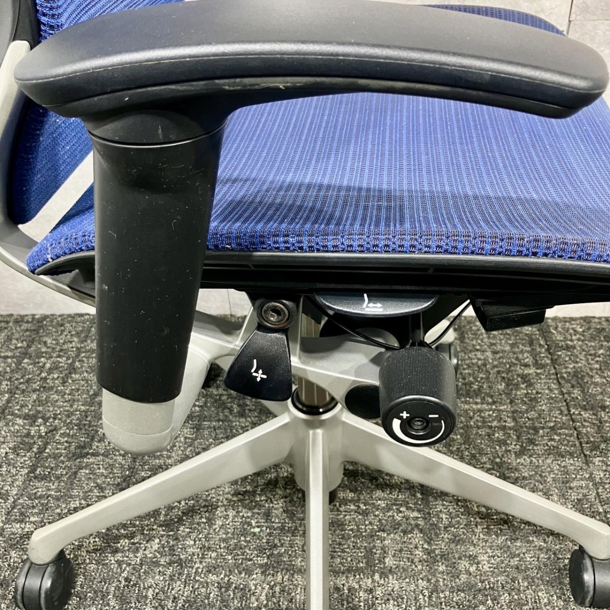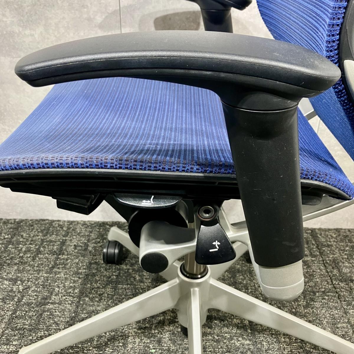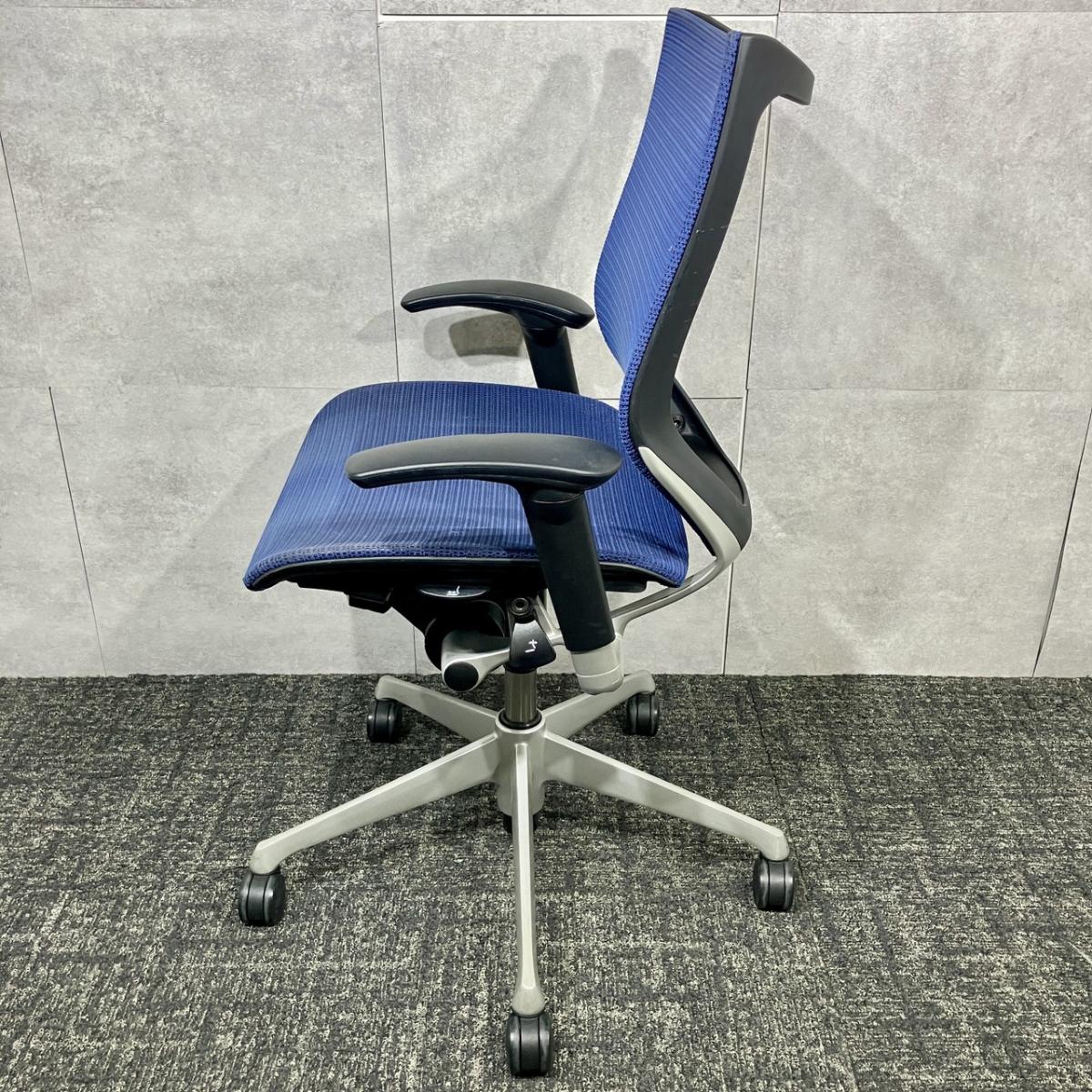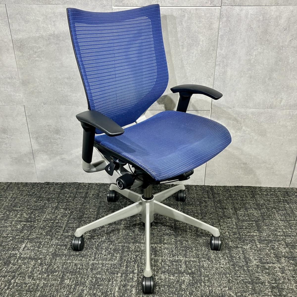 【福岡倉庫在庫】【長時間の着座でも疲れにくい!】■オカムラ バロンチェア 可動肘付 ミディアムブルー ローバック シルバーフレーム ■良い椅子は腰を守る投資です!【Okamura Baron】