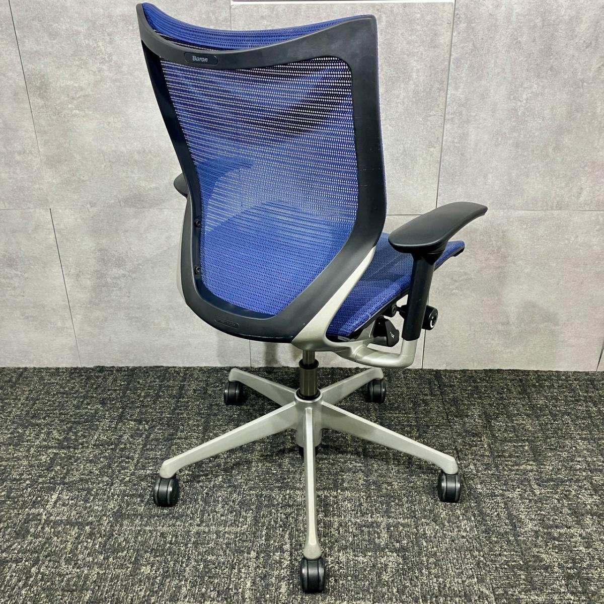 【長時間の着座でも疲れにくいサポート感! 大人気の高級オフィスチェア!】■オカムラ(okamura)製 バロンチェア(Baron) 肘付チェア ローバック ■ブルー ■メッシュ背面×メッシュ座面【ベストなポジションが得られる先進設計!】【入替セールにつき40%OFF!】